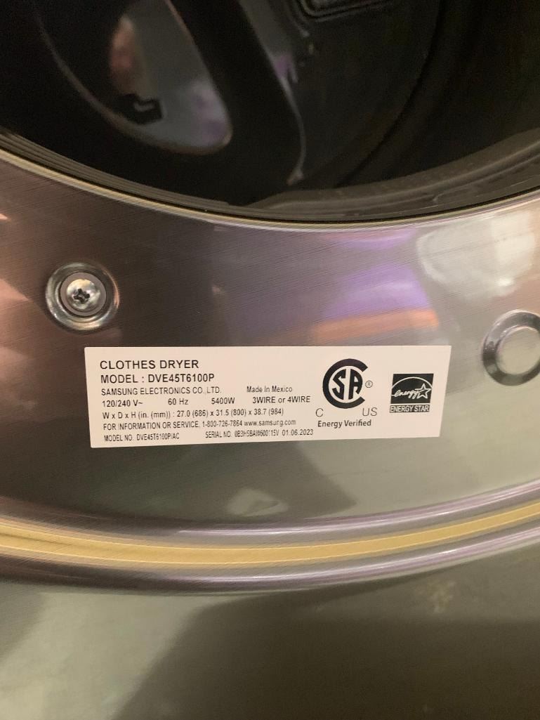 Samsung Clothes Dryer Model DVE45T6100P with MultiSteam Moisture Sensor