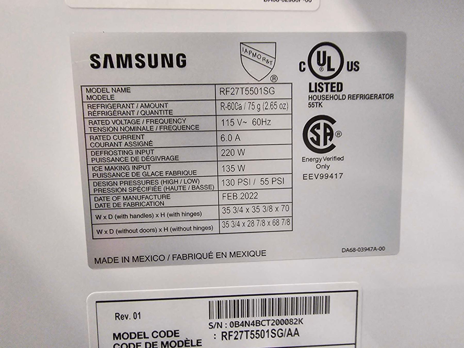 Samsung RF32CG5900MTAC French Door Refrigerator, 36 inch Width, ENERGY STAR Certified, 31 cu. ft. Capacity, Black Matte Steel colour Family Hub **SCRATCH & DENT***