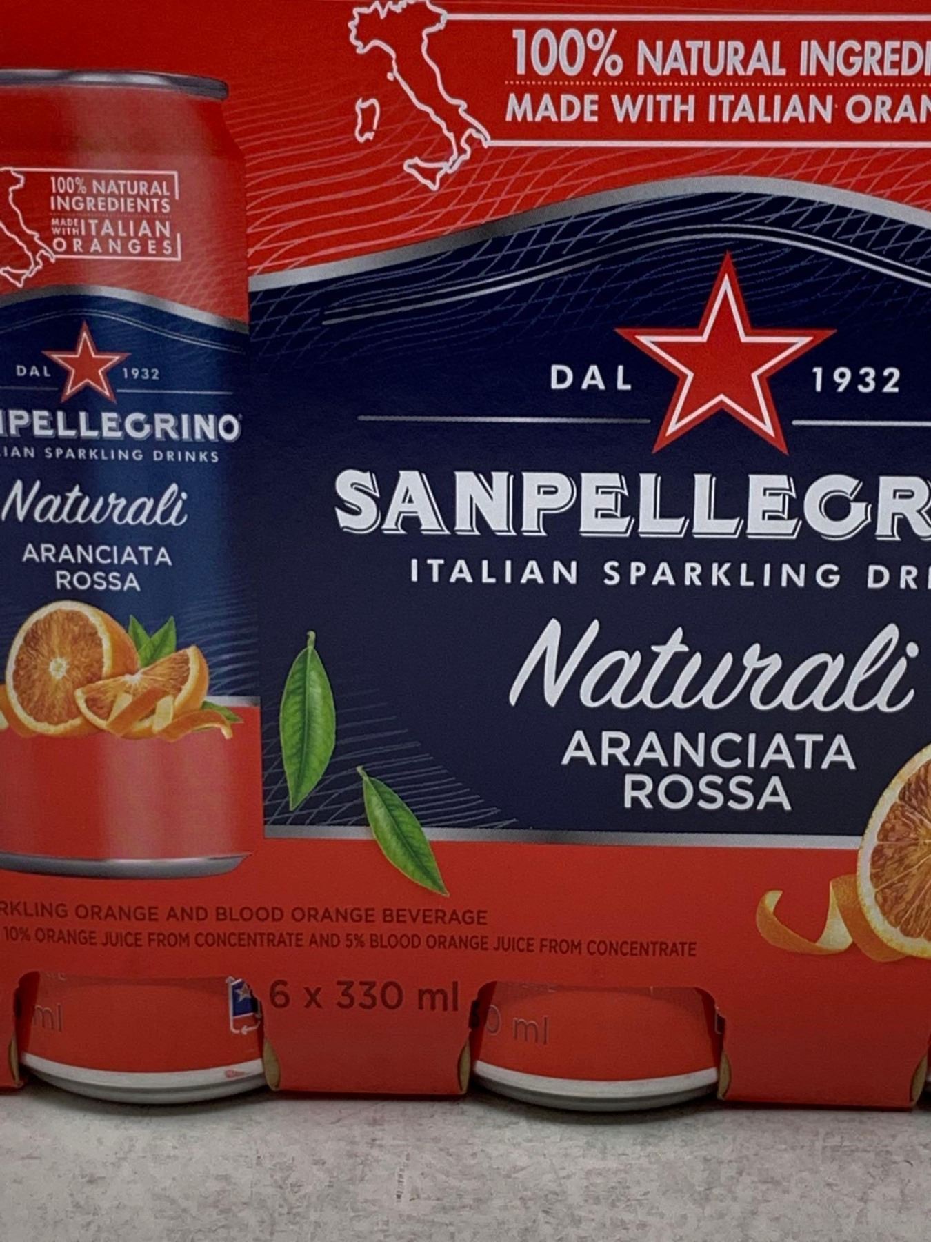 SanPellegrino Italian Sparkling Drinks- Naturali Aranciata Rossa (6 x 330ml)