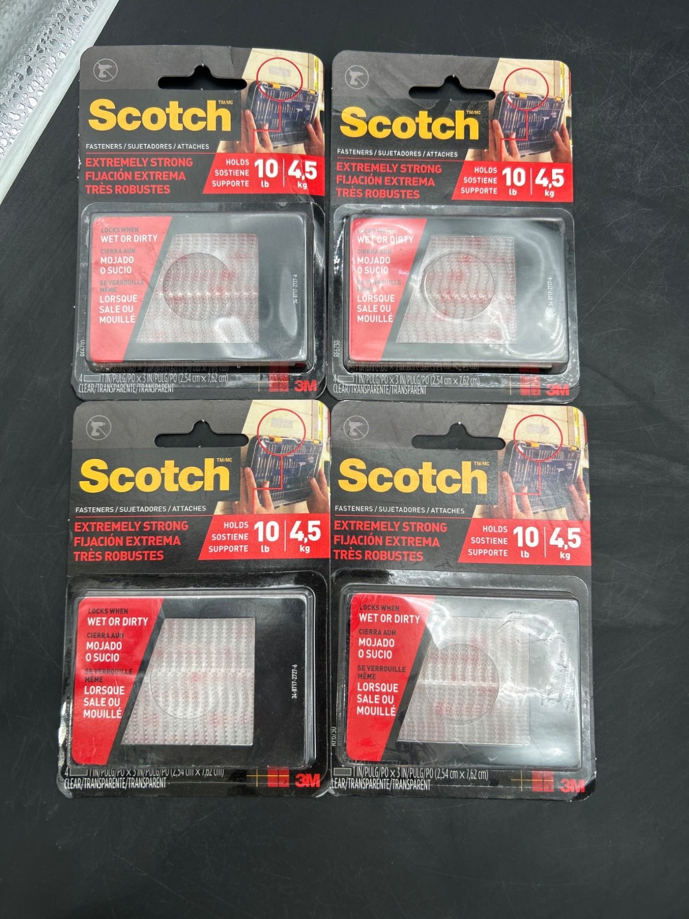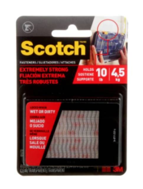 Scotch Extreme Fasteners, Clear, 1 in x 3 in (2.54 cm x 7.62 cm) 4 Packs