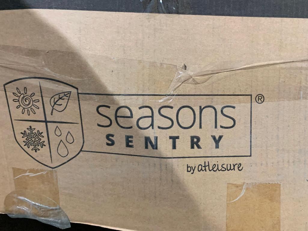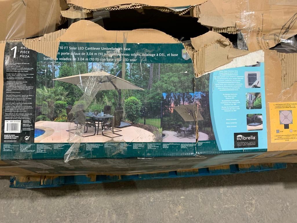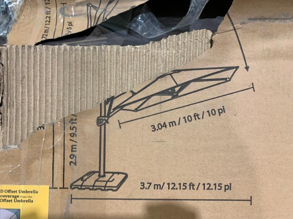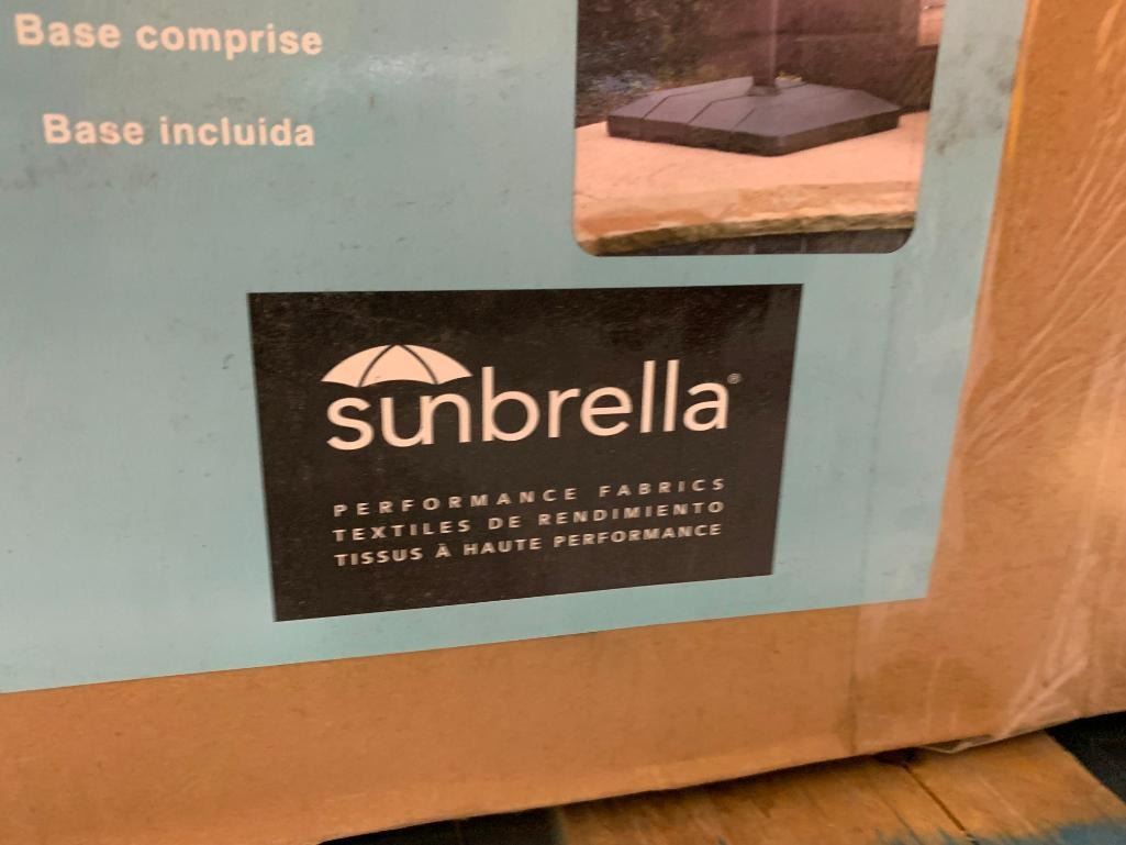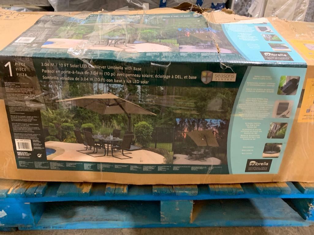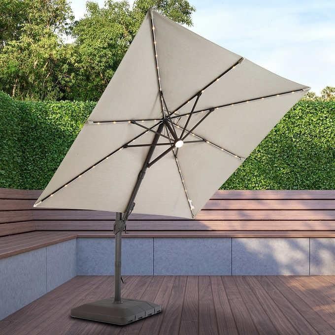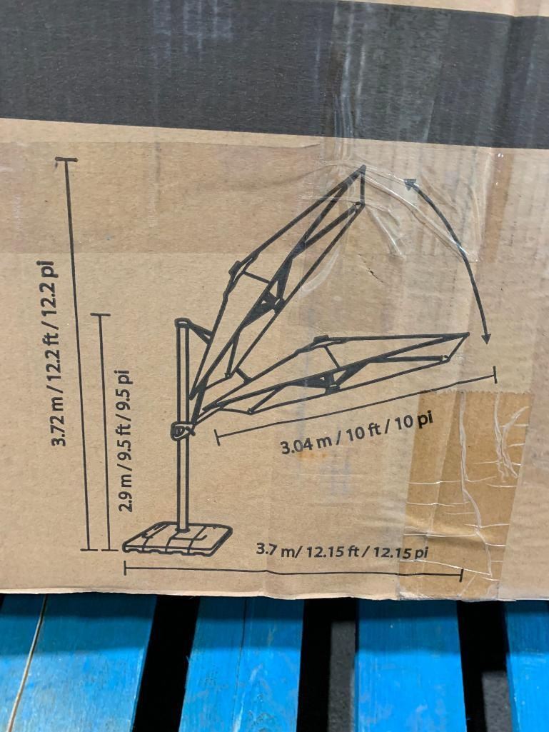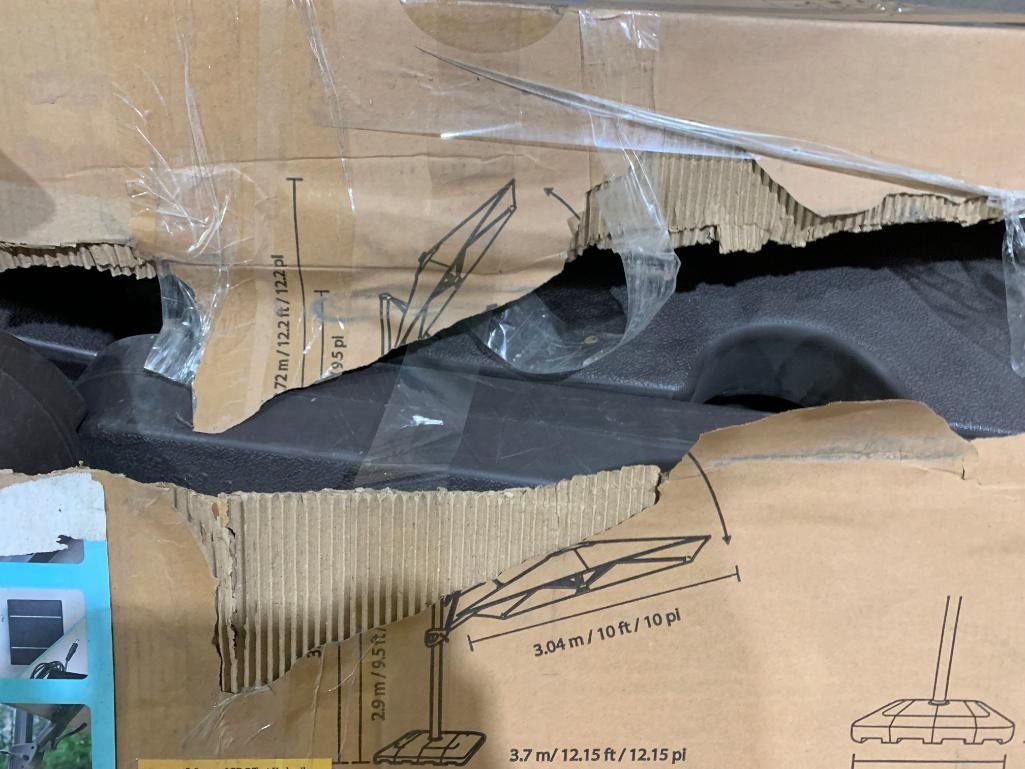 Seasons Sentry 10' Solar Powered, Rechargeable Square Solar LED Cantilever Umbrella with Base - Open Box - Sold As Is