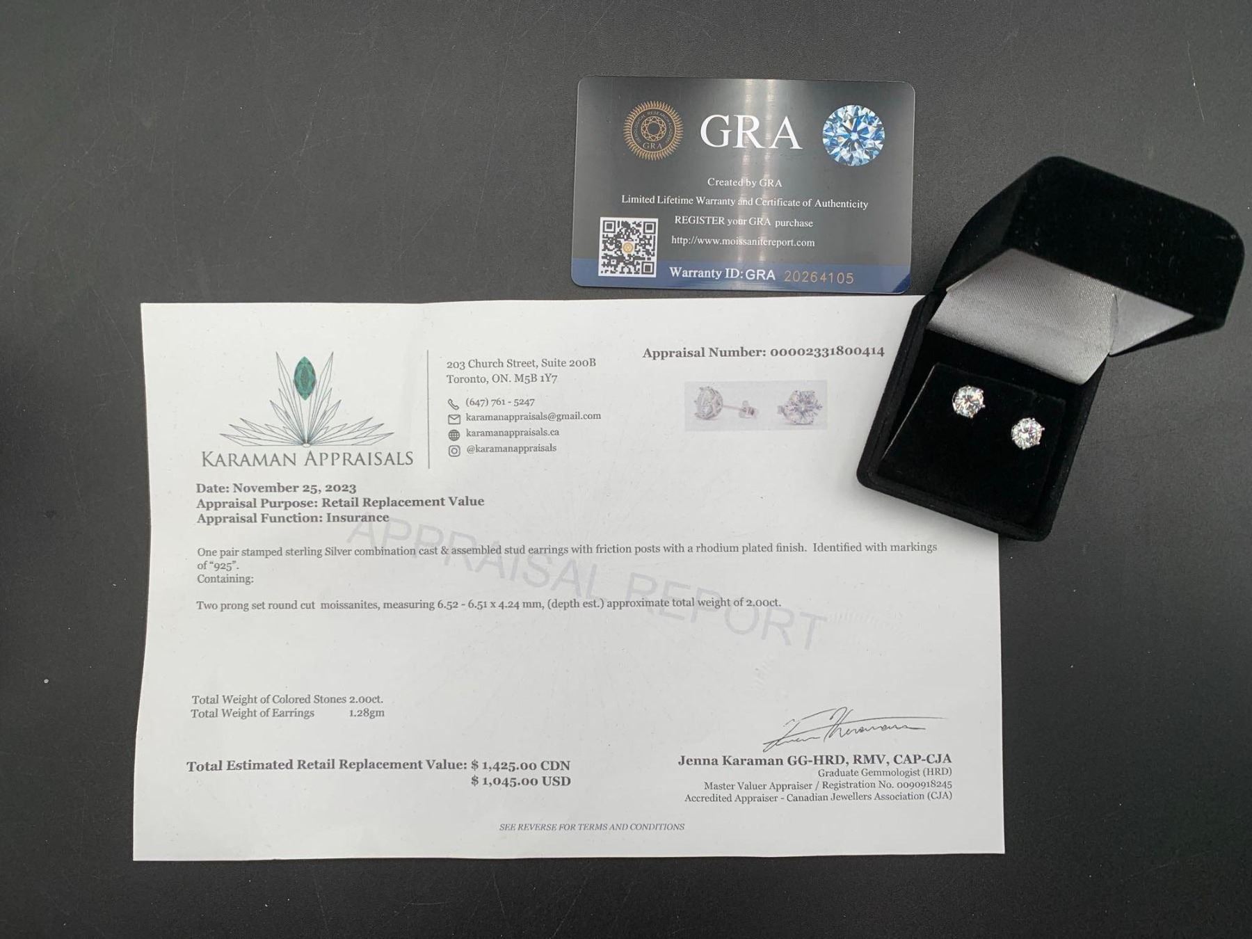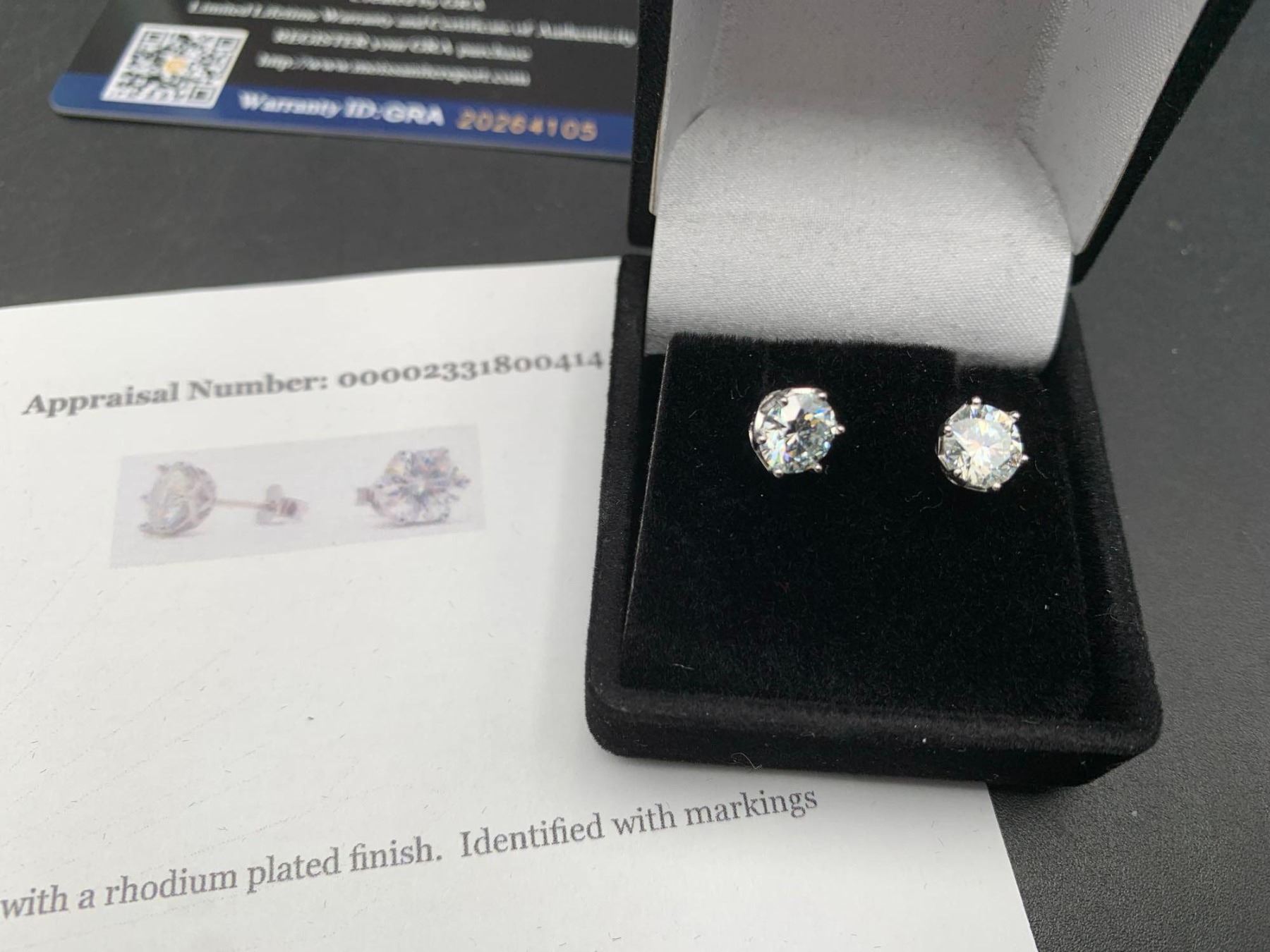 Set of 2.0 carat Moissanite Solitaire Stud earrings with appraisal $1425.00