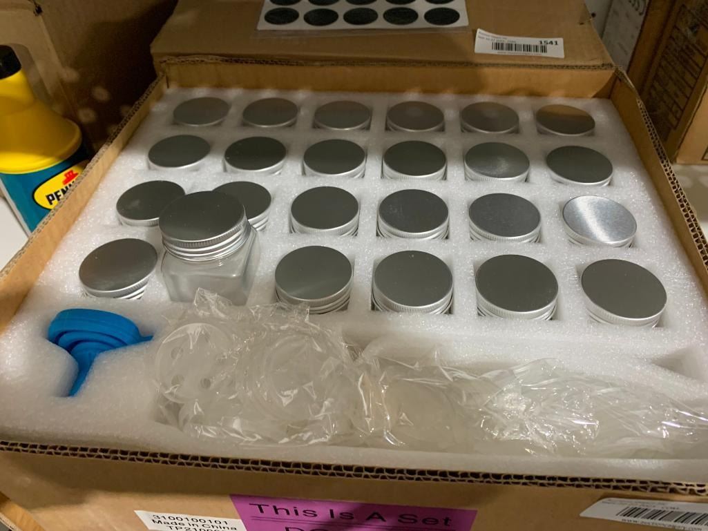 Set of 24 - Glass Spice Jars with accessories - Funnel, Two Size Shaker Lids & Solid Lids for Storage