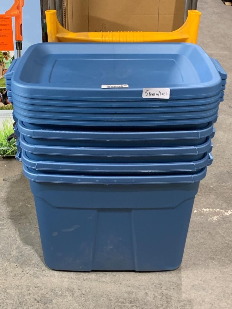 Set of 5 Rugged Tote 18-Gallon Storage Containers with Lids
