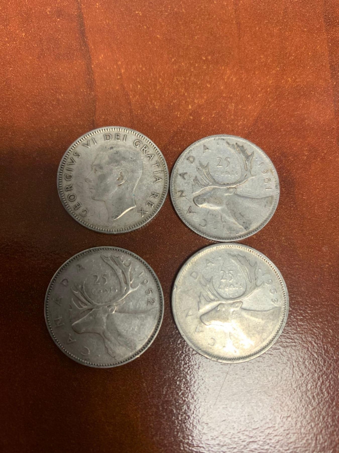 Set of Vintage Canada King George VI Sequential Silver Quarters from 1950-1953
