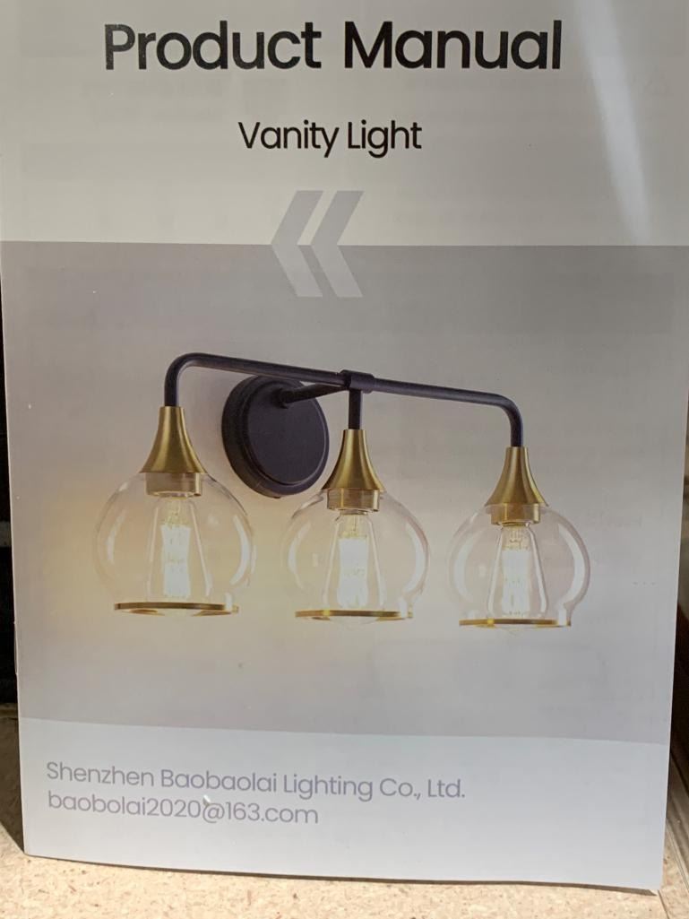 Shenzhen BaobaoLai Vanity Light 22.4 in. 3-Light Black and Gold Bathroom Vanity Light with Clear Globe Glass Shades