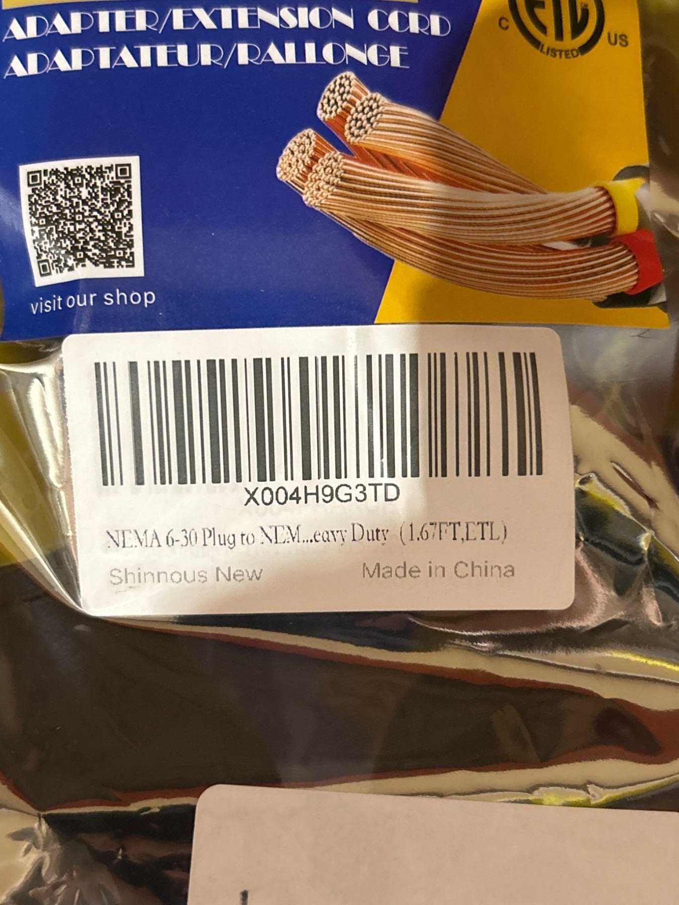 Shinnous Heavy Duty NEMA 6-30 Adapter/Extension Cord, 1.6FT, Lot of 2
