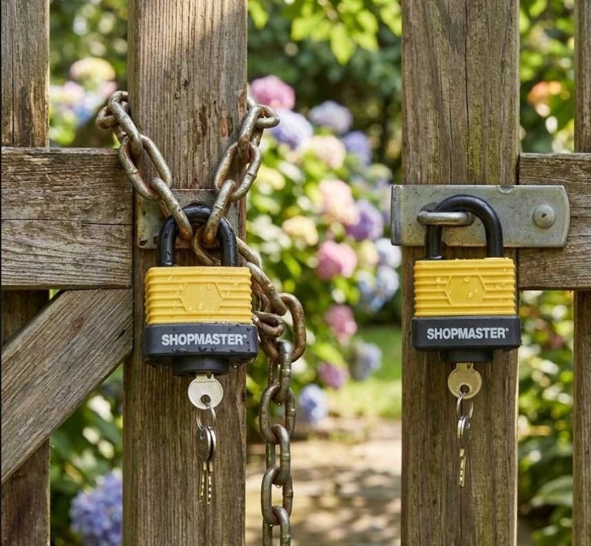 ShopMaster 1.5 Inch (40mm) Weather Resistant Laminated Steel Padlocks, Keyed Alike - 2 Pack