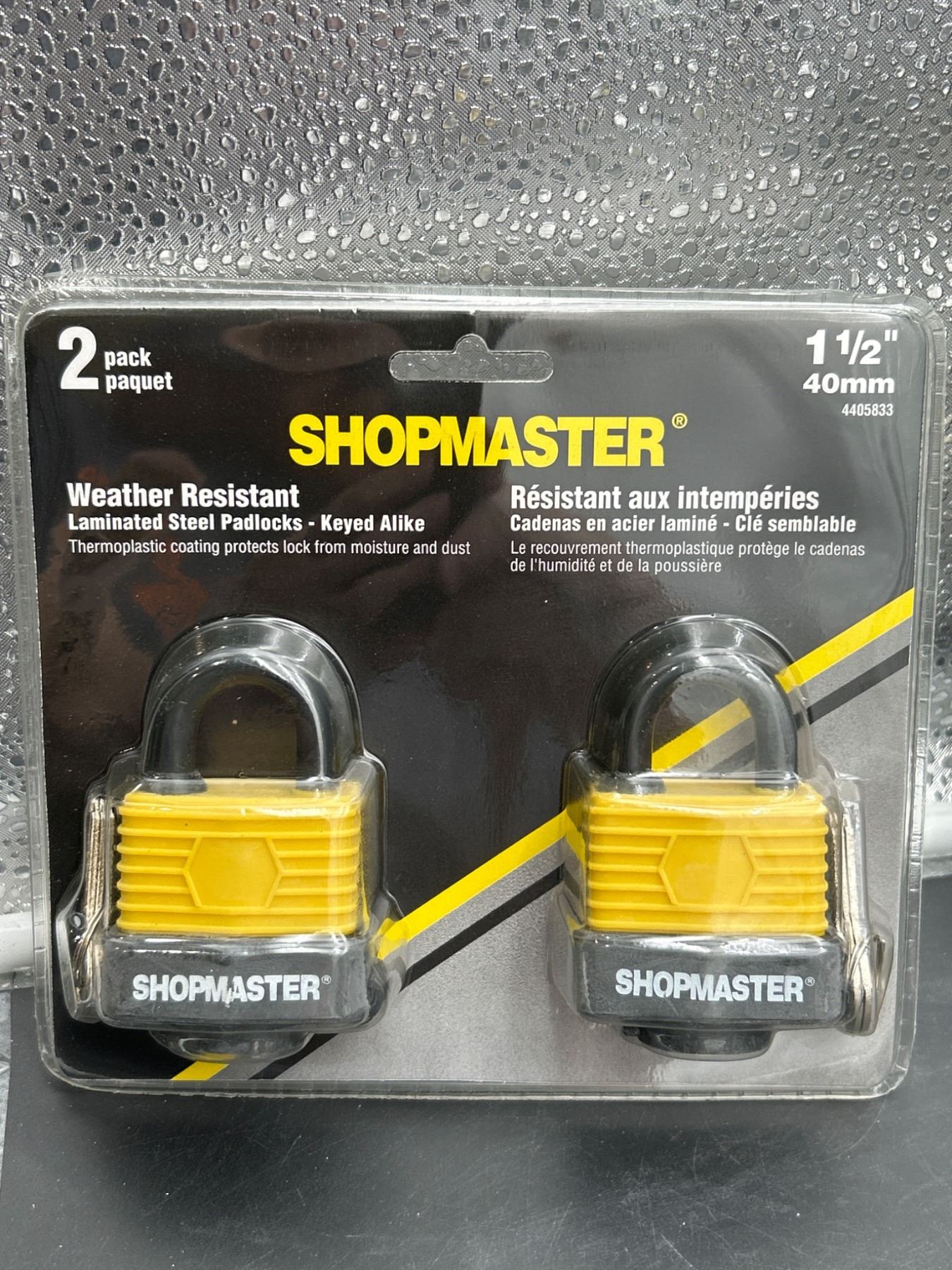 ShopMaster 1.5 Inch (40mm) Weather Resistant Laminated Steel Padlocks, Keyed Alike - 2 Pack