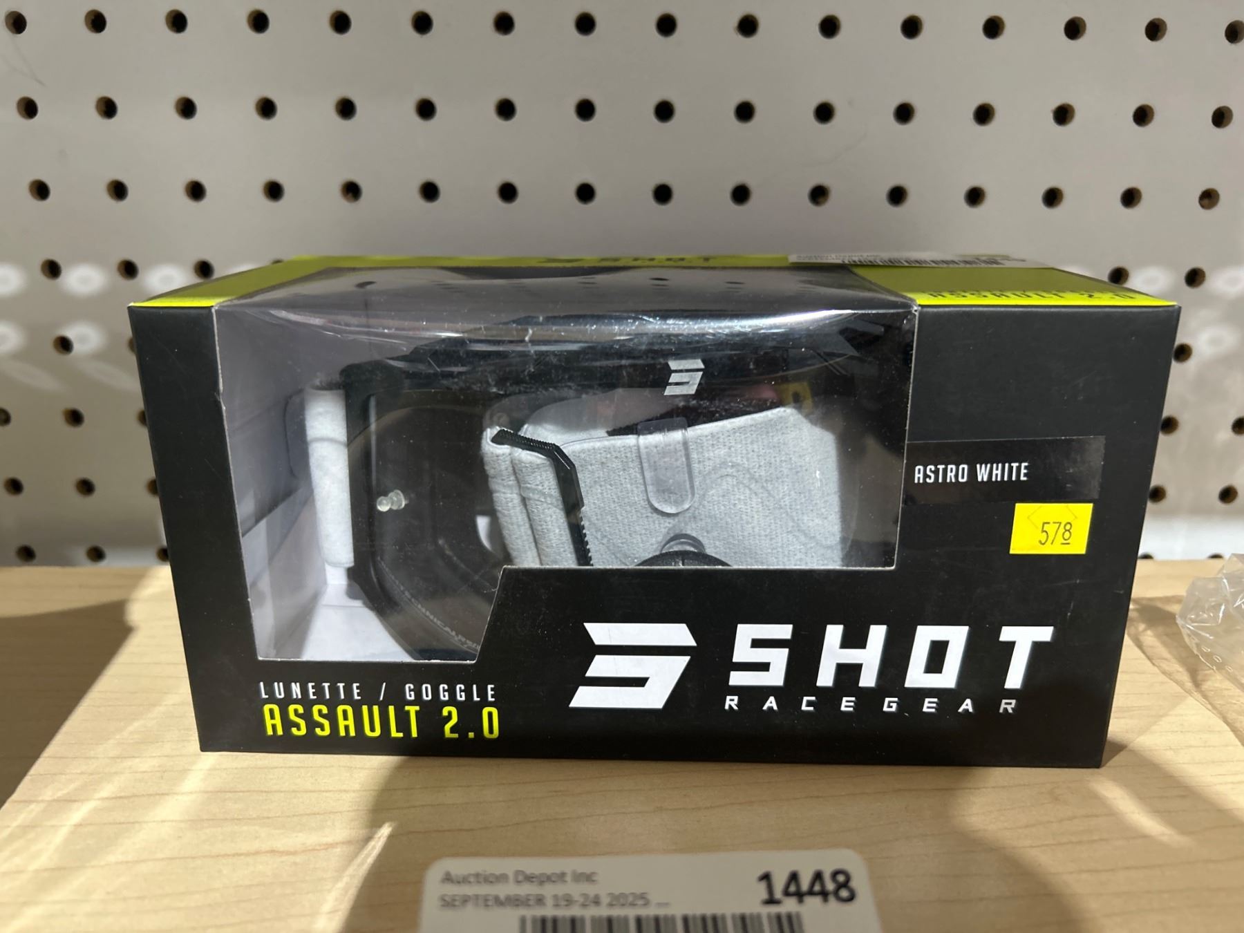 Shot Race Gear Assault 2.0 Goggles in Astro White with Model Information Visible