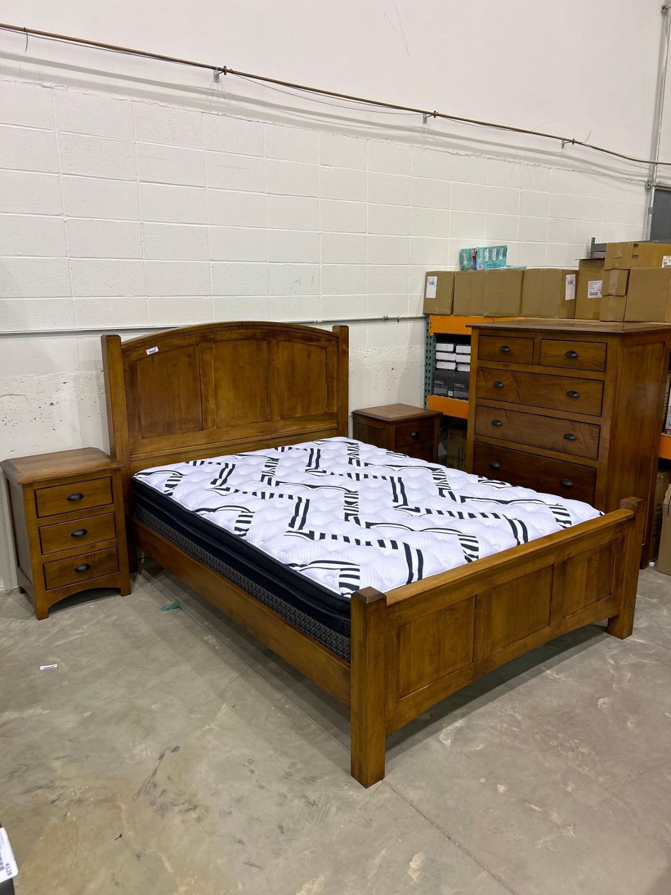 Signature Fine Furniture Solid Wood 7 piece Queen size bedroom set, 2 night stands, 4 pce queen size bed frame , 6 drawer dresser & pillow Top mattress & Base