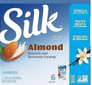 Silk Almond Vanilla Milk 12 x 236 mL With Paper Straws
