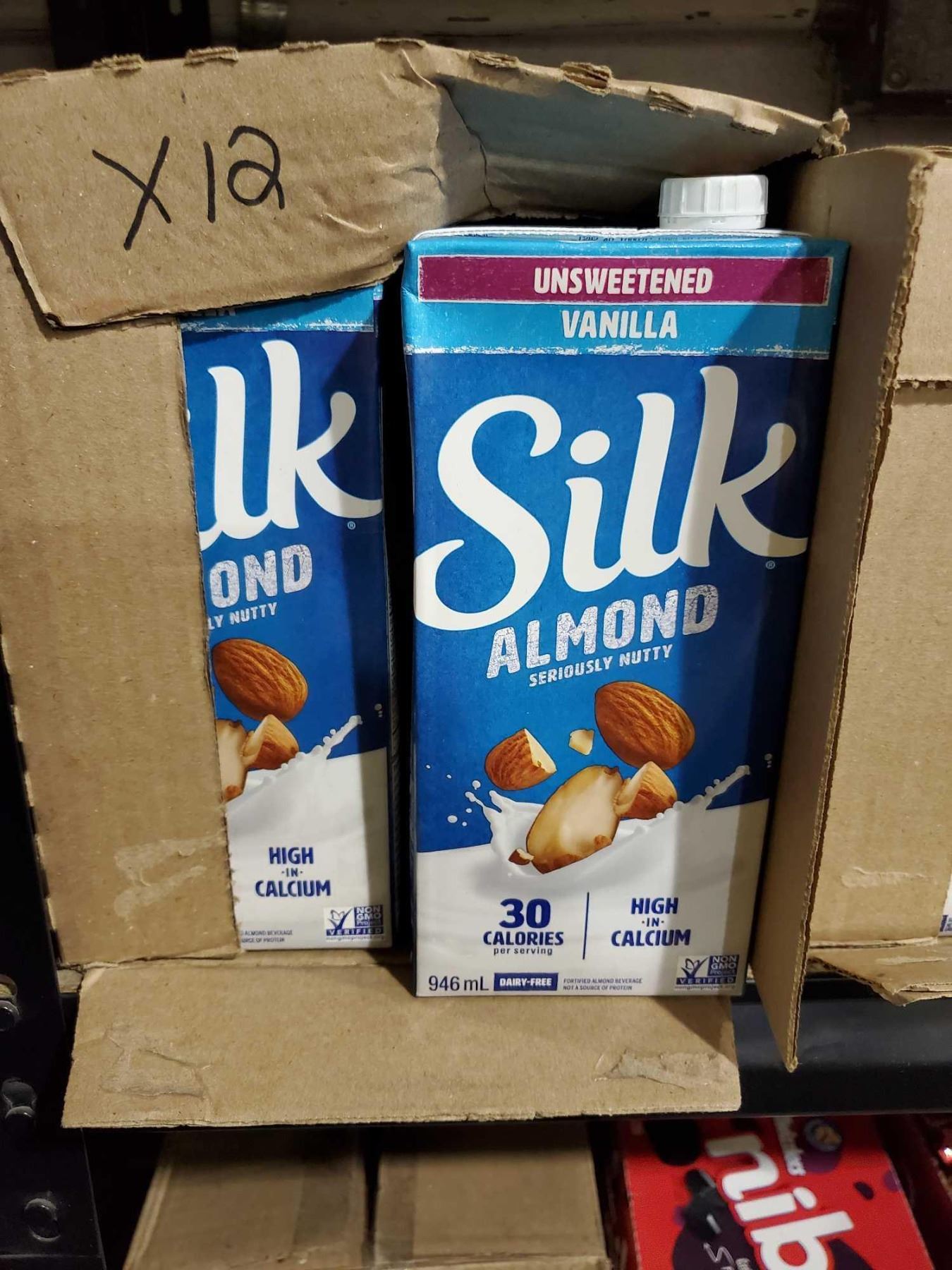 Silk Unsweetened Vanilla Almond Milk Case lot of 12x 946ml