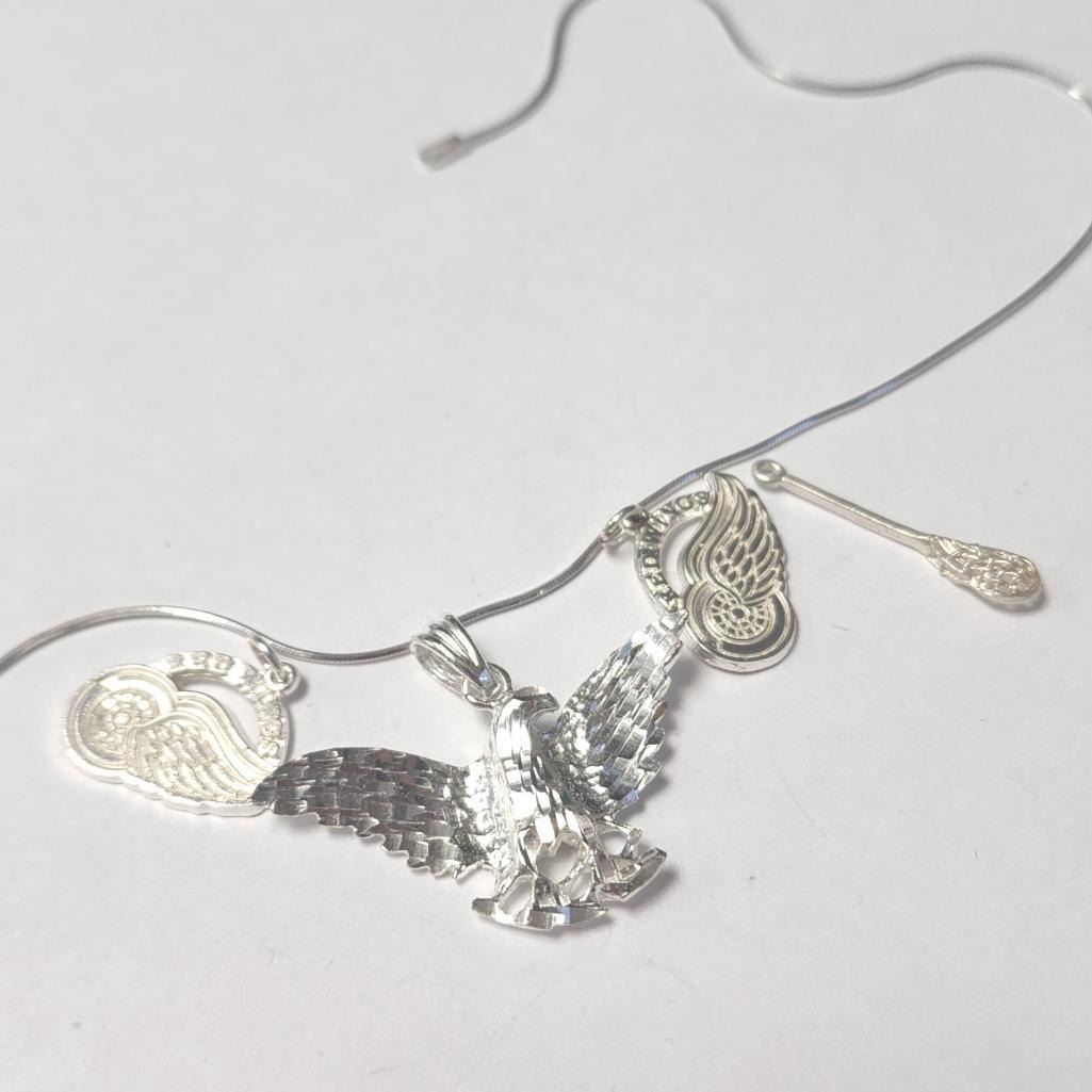 Silver 4 Pendants With Chain 16" Necklace (~Size )(Ring is resizable for $40) (~length inches), Suggested Retail Value $120