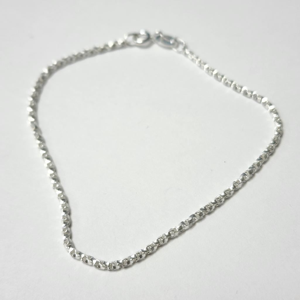 Silver 7.5" Box Chain Bracelet (~Size )(Ring is resizable for $40) (~length inches), Suggested Retail Value $40