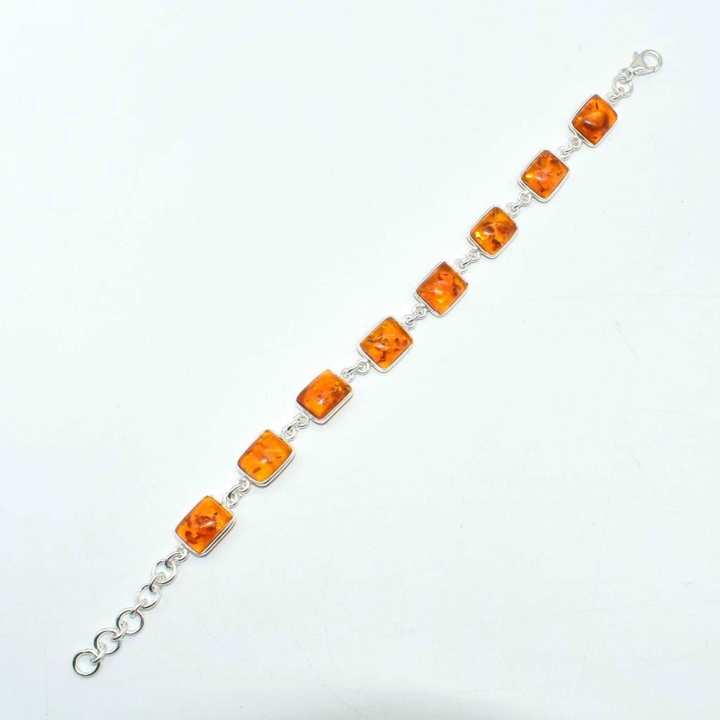 Silver Amber(14.4ct) Rhodium Plated Bracelet (~weight 7.15g)