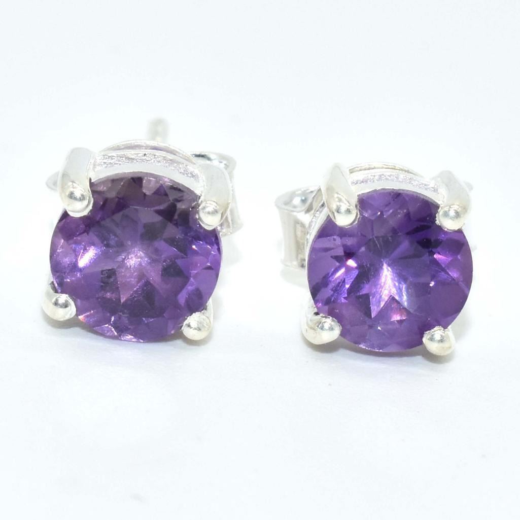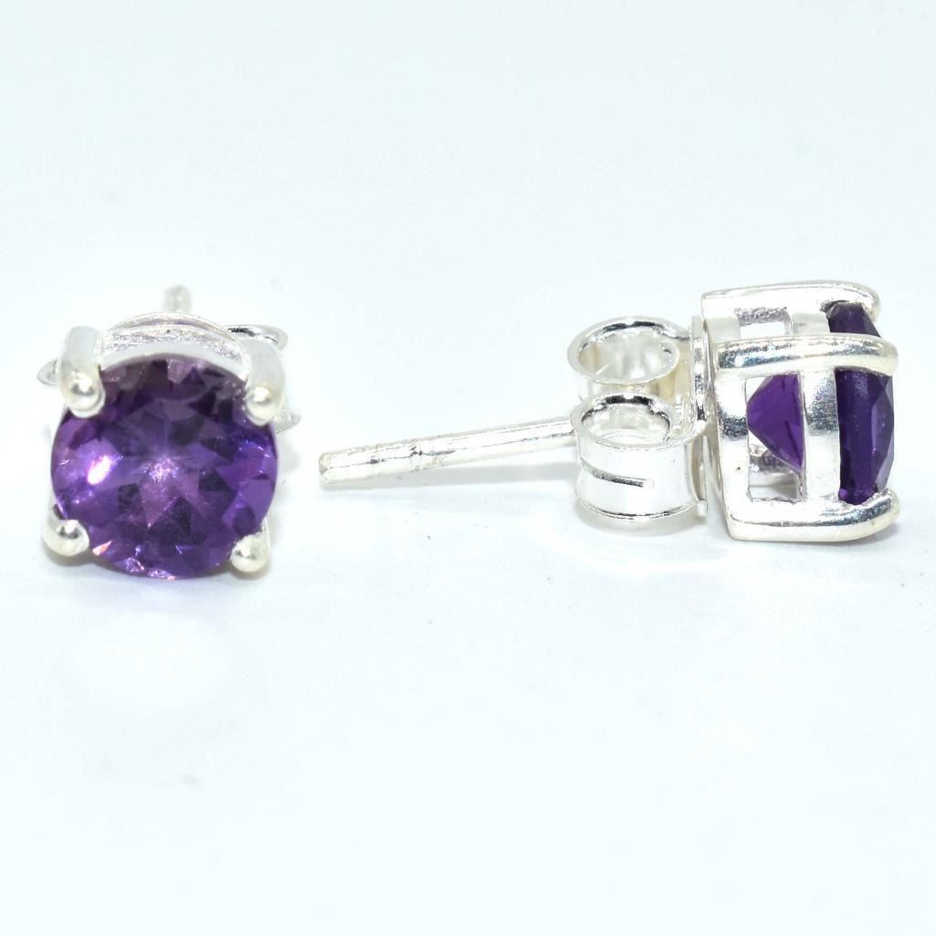Silver Amethyst(1.65ct) Plated Earrings (~Size 0) (~length 0 inches) (~weight 1.75g)