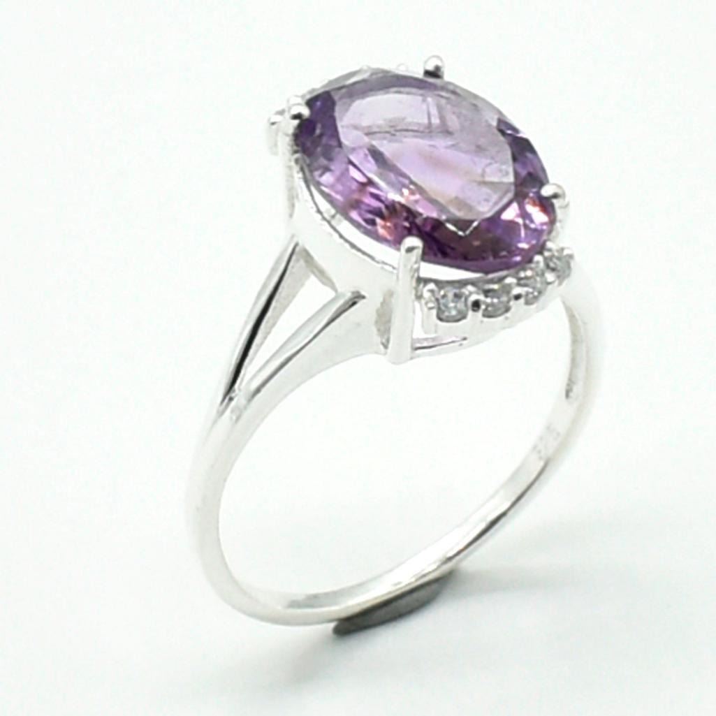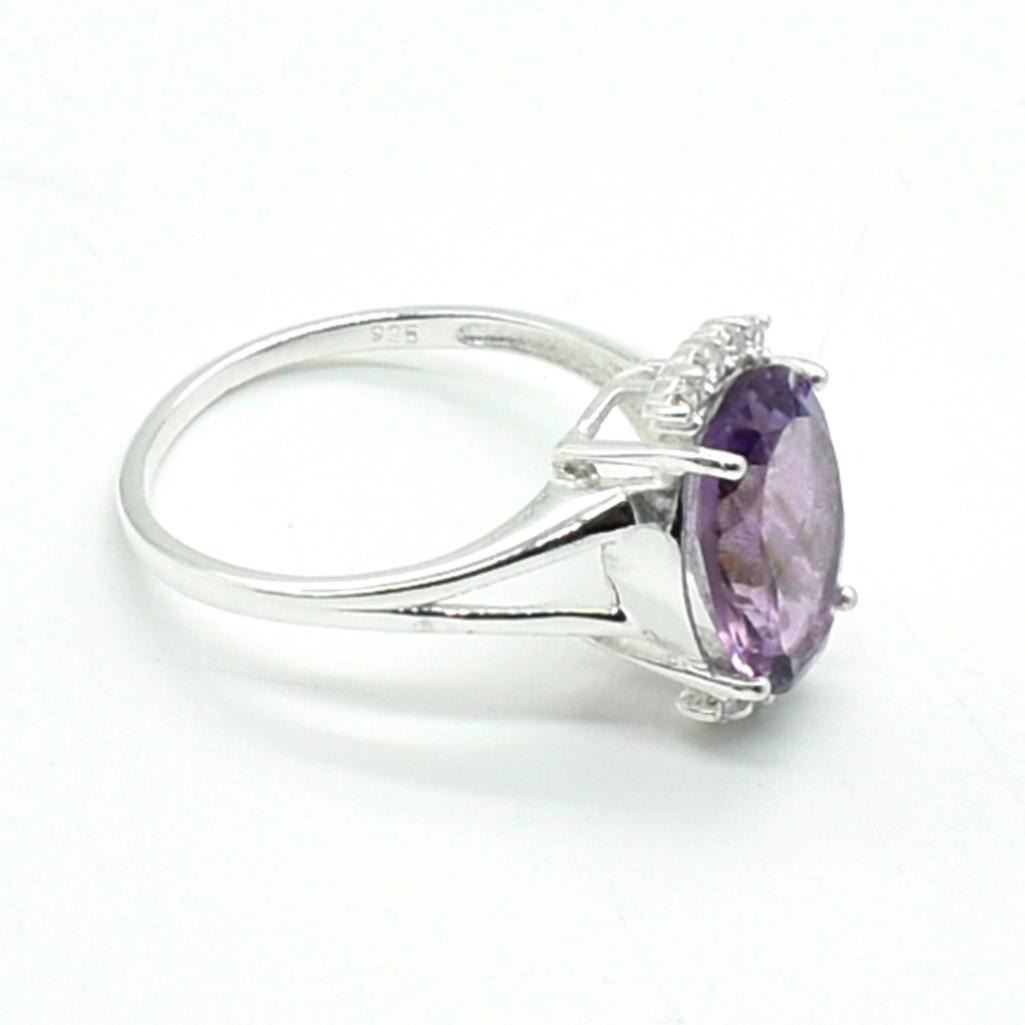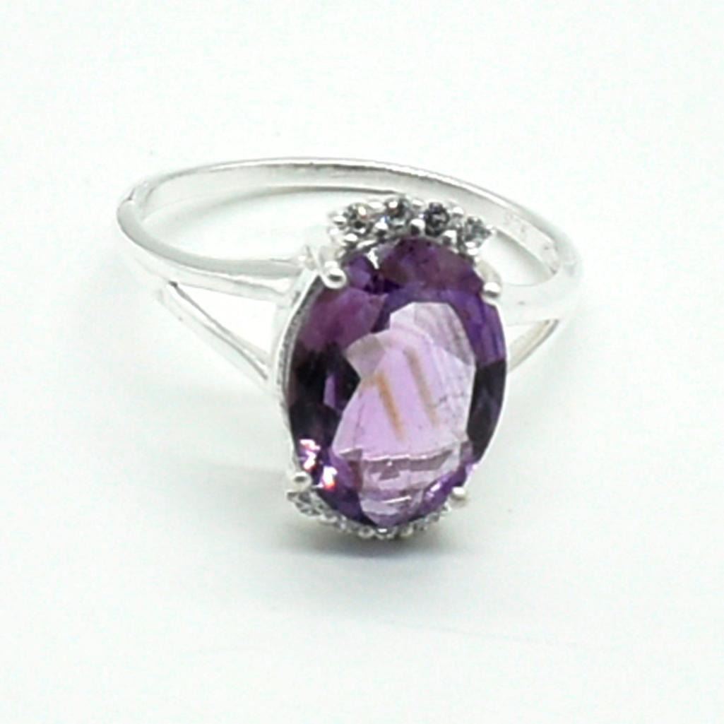 Silver Amethyst Cz(2.6ct) Rhodium Plated Ring (~weight 3.65g)