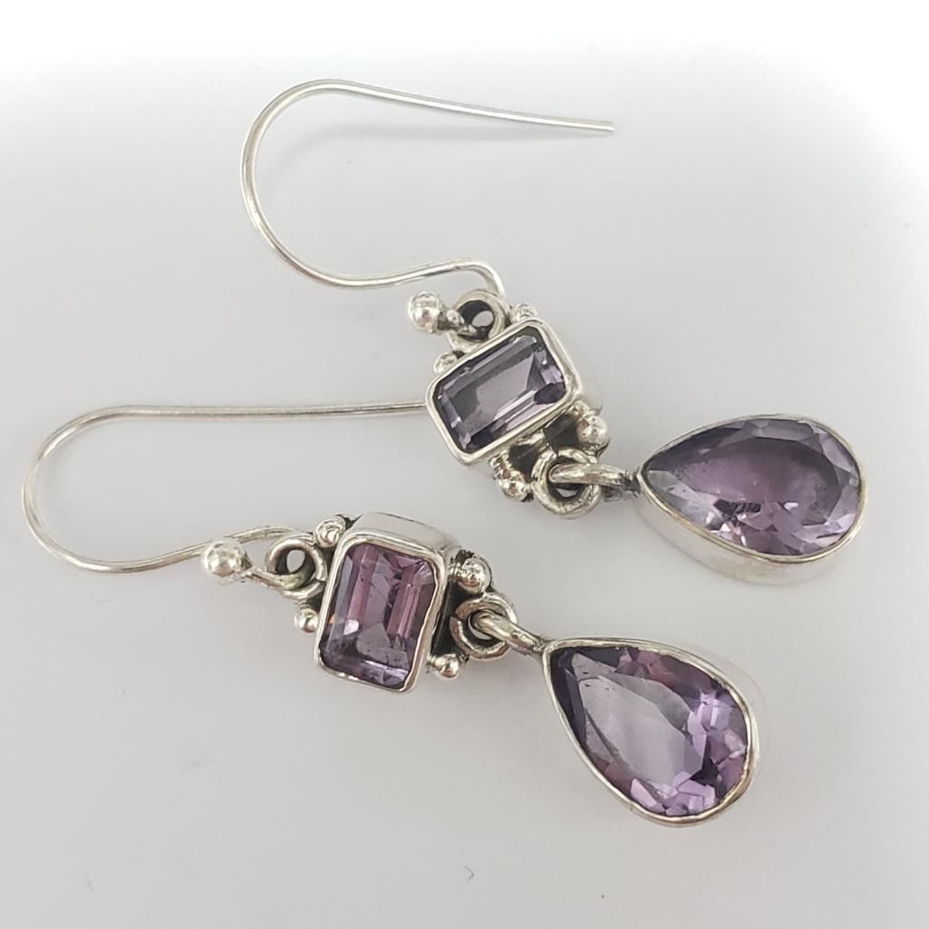 Silver Amethyst Earrings (~Size 0) (~length 0 inches)