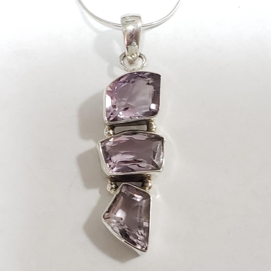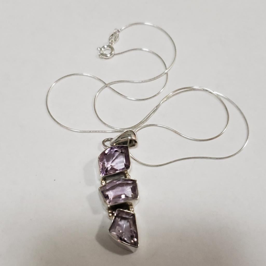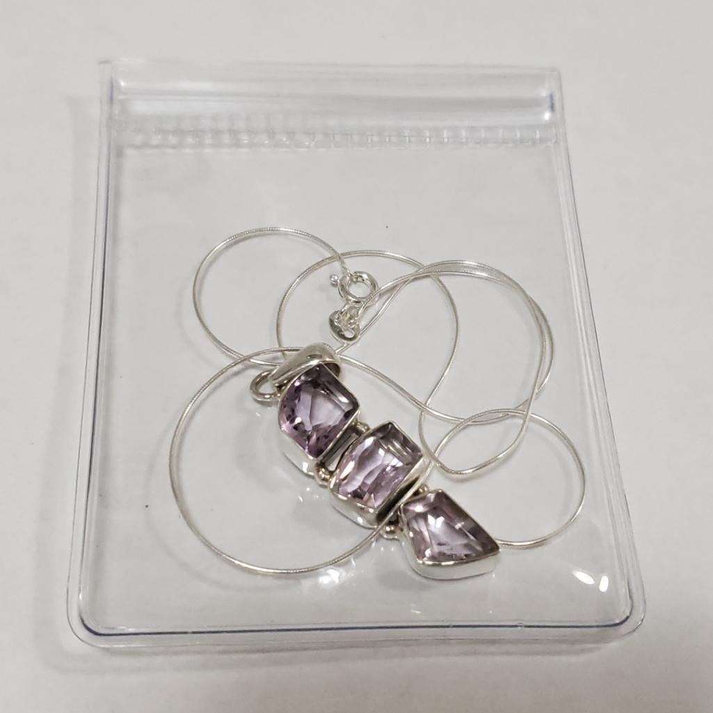 Silver Amethyst Necklace (~Size 0) (~length 20 inches) (~weight 7.91g), Suggested Retail Value $360