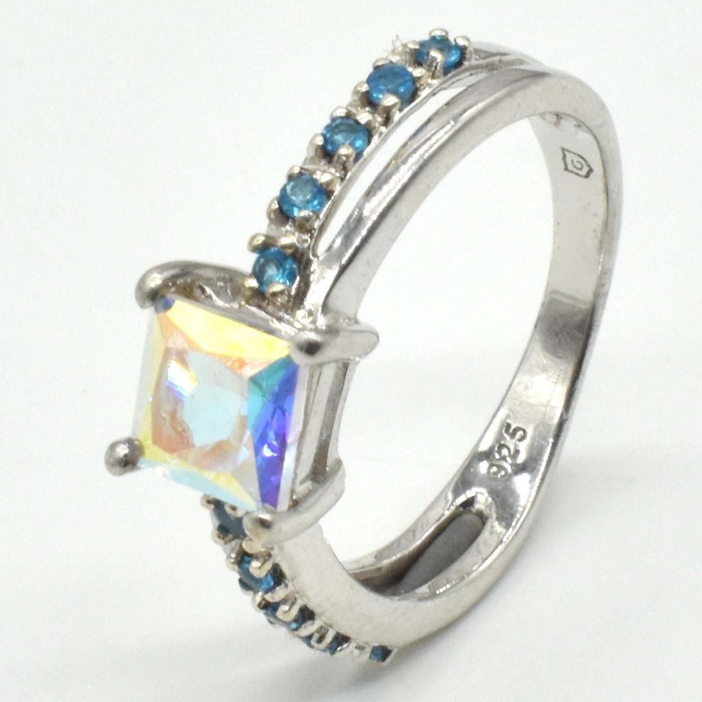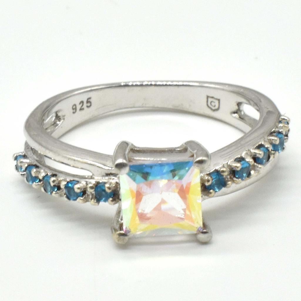 Silver Azotic Topaz Cz(3.1ct) Rhodium Plated Ring (~weight 3.1g), Suggested Retail Value $200