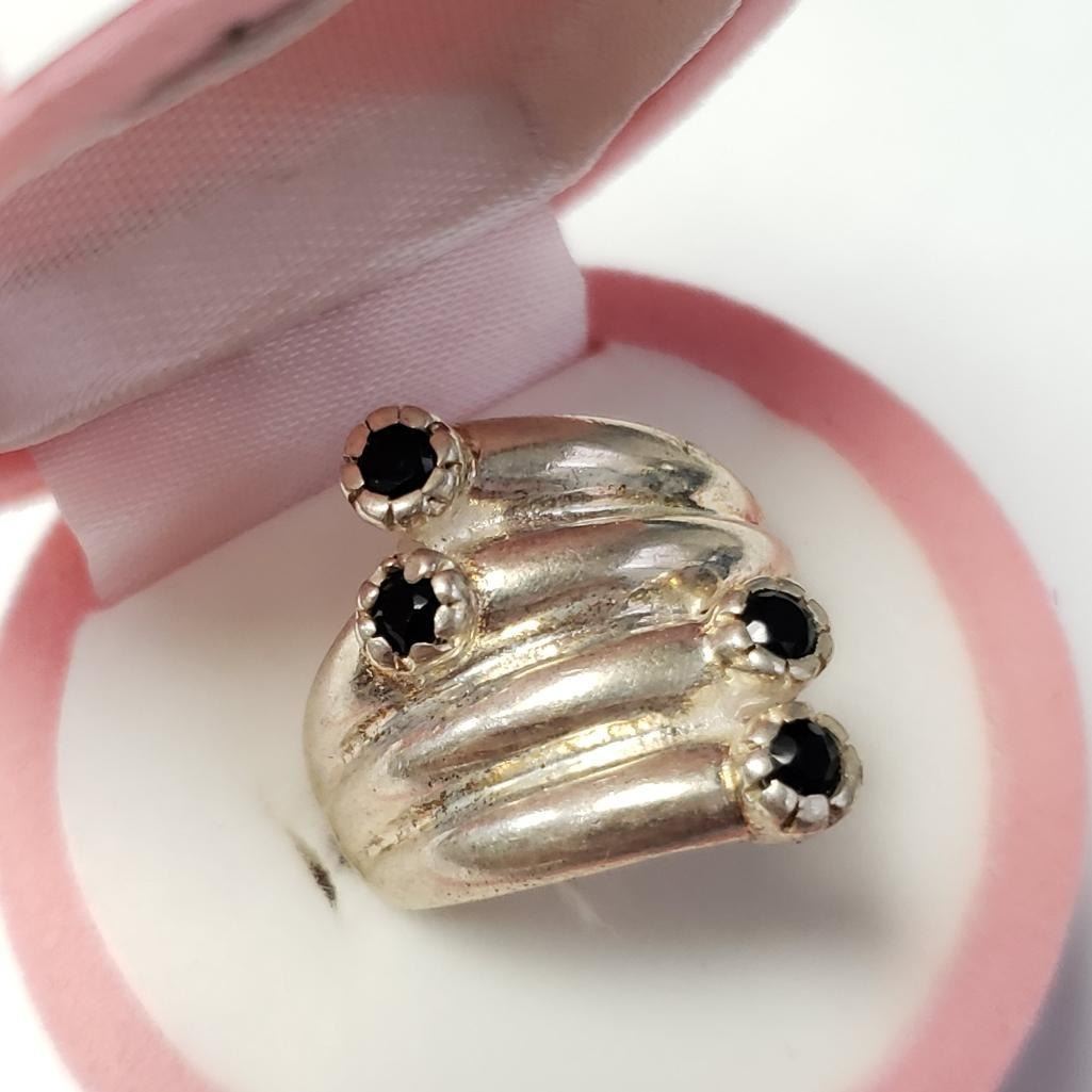 Silver Black Onyx Ring (~Size 0) (~length 0 inches), Suggested Retail Value $200