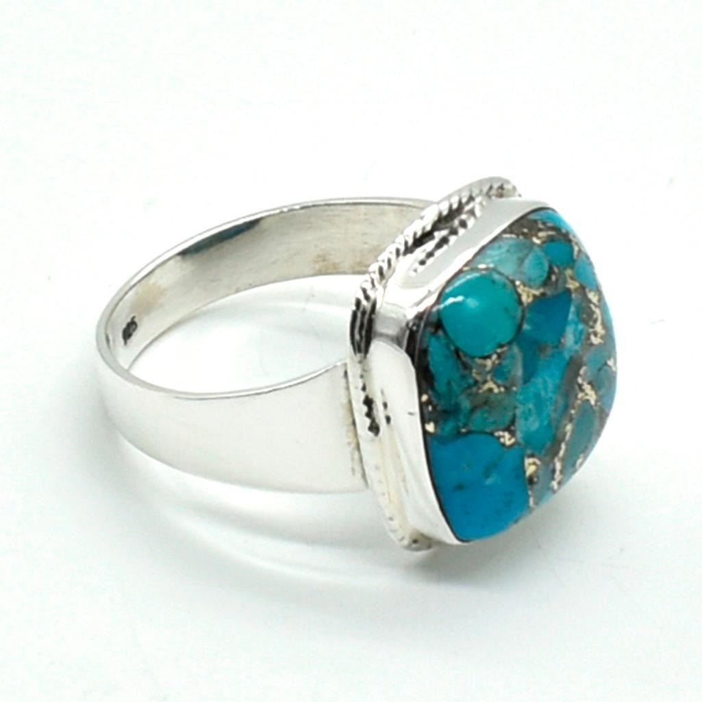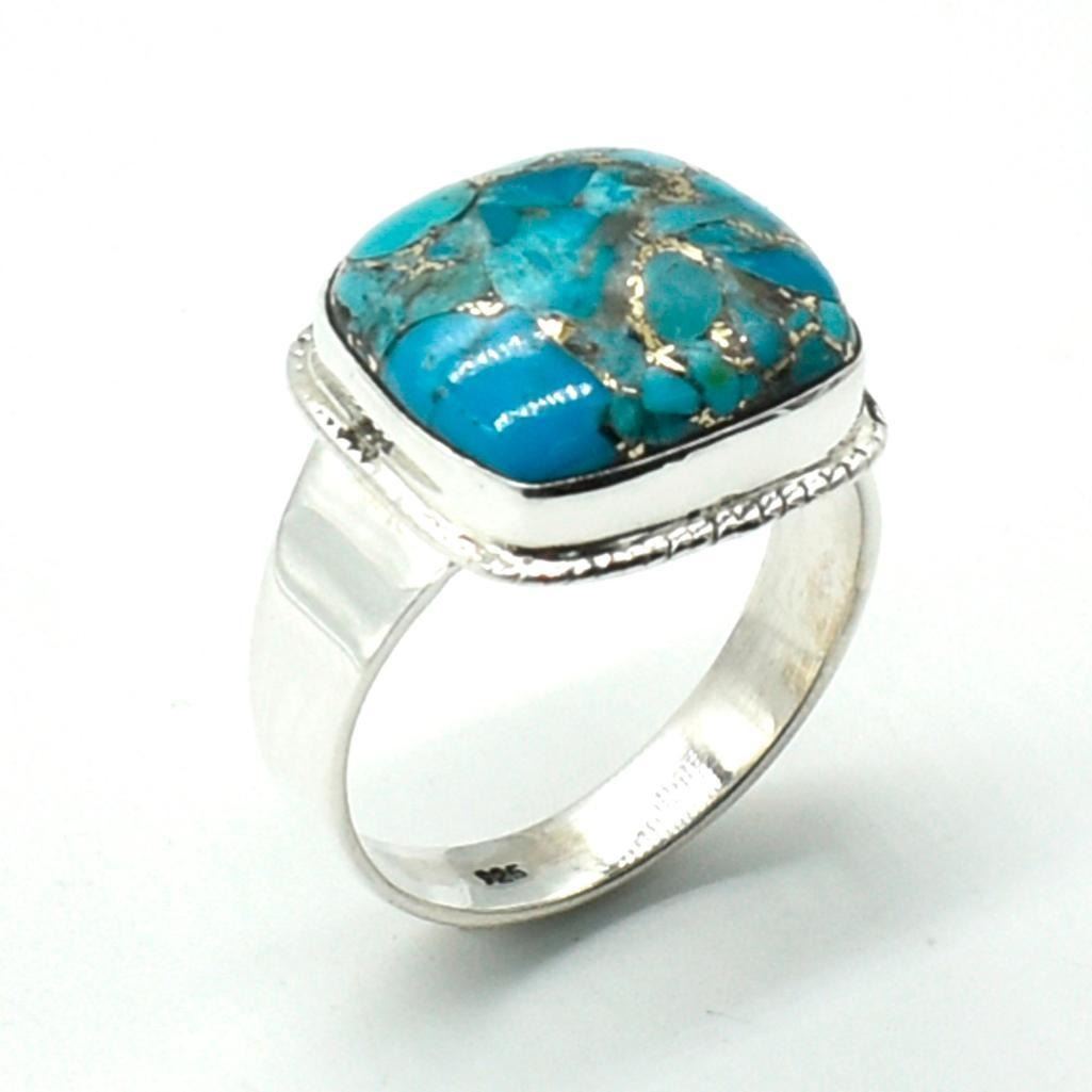 Silver Blue Copper Turquoise(9.2ct) Hand Made Mens Ring Ring (~weight 6.95g)