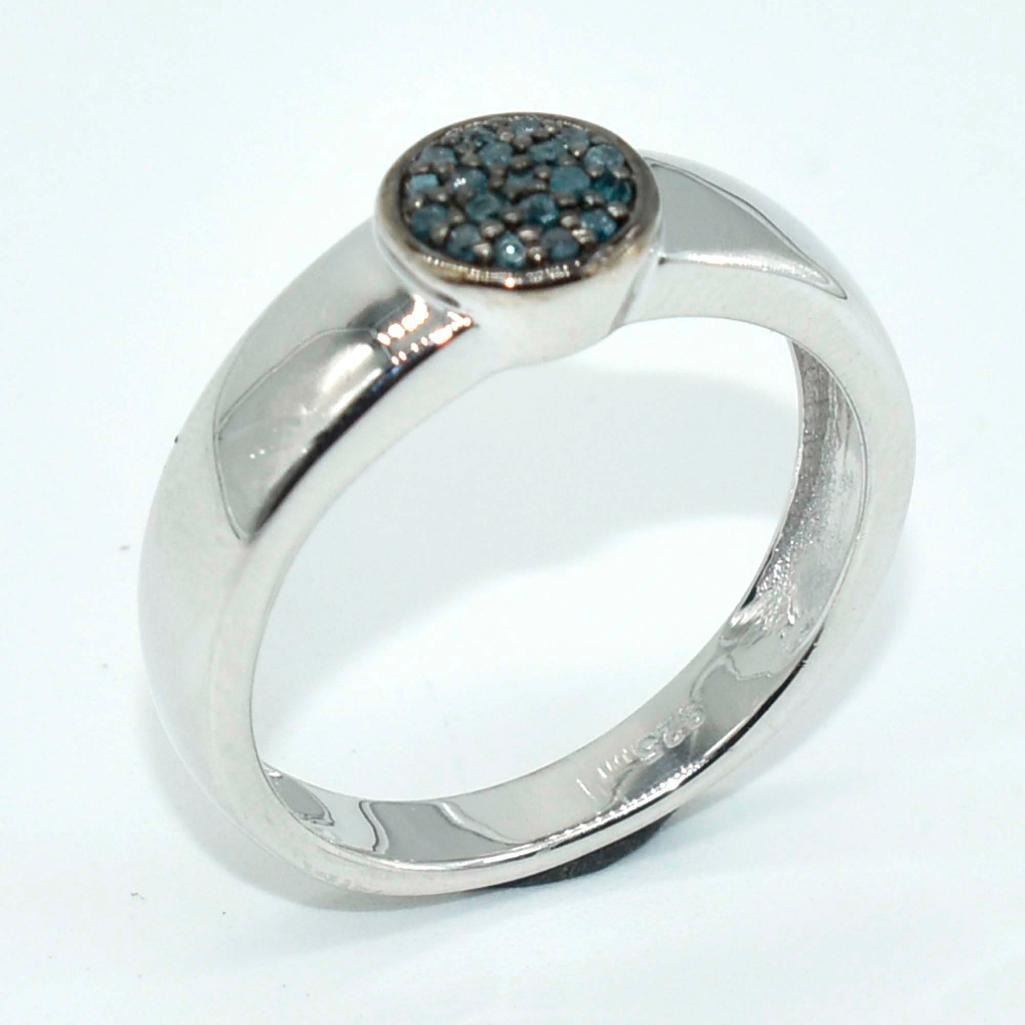 Silver Blue Diamond(0.75ct) Rhodium Plated Ring (~weight 2.85g)