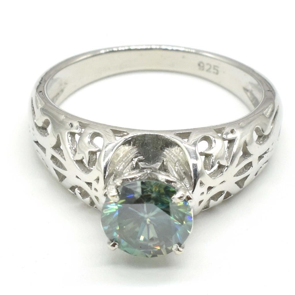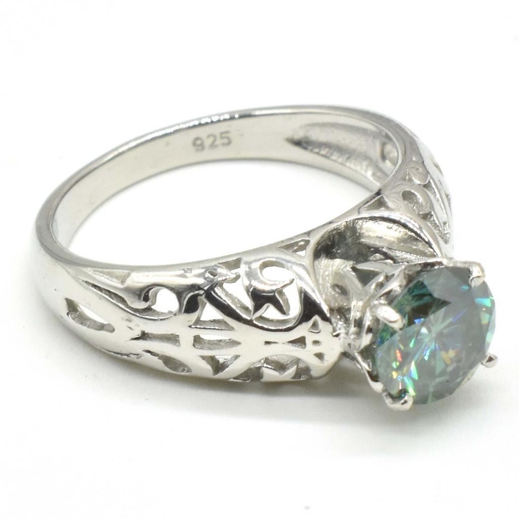 Silver Blue Moissanite ( Round 6.5 Mm)(3.4ct) Rhodium Plated Test And Looks Better Than Diamond Ring (~weight 3.4g), Suggested Retail Value $500