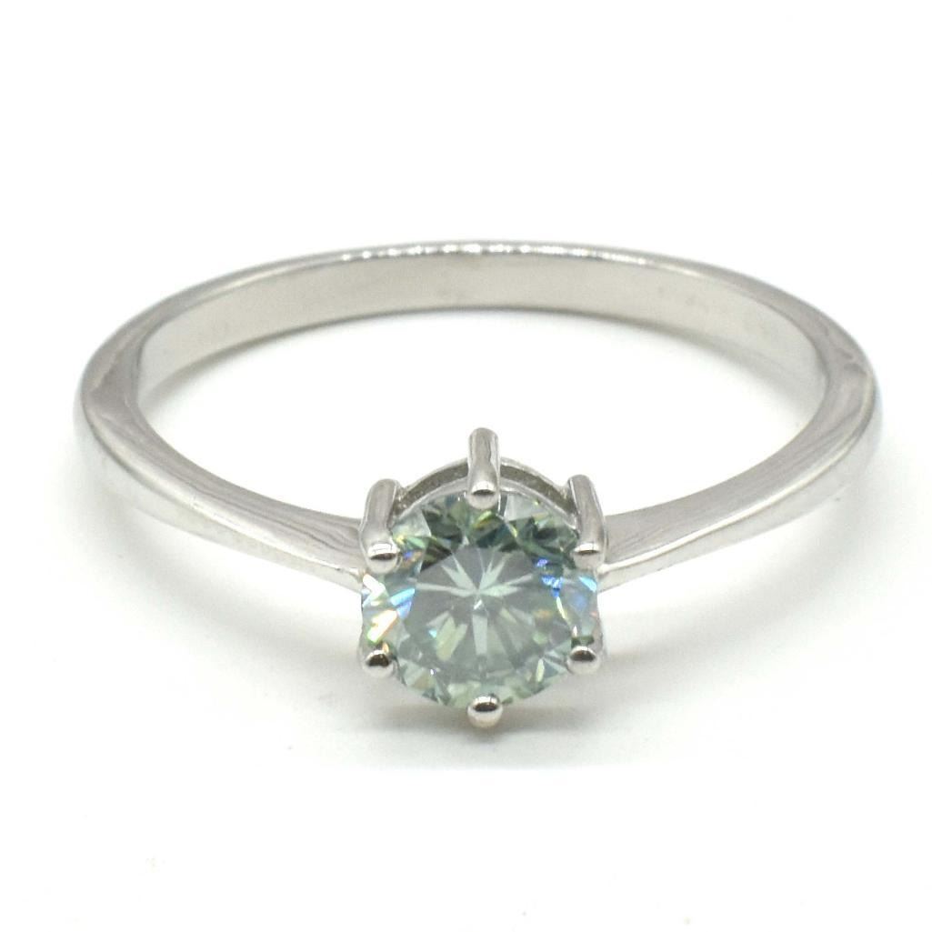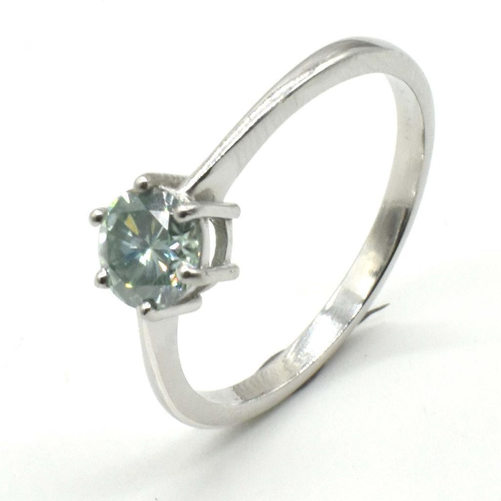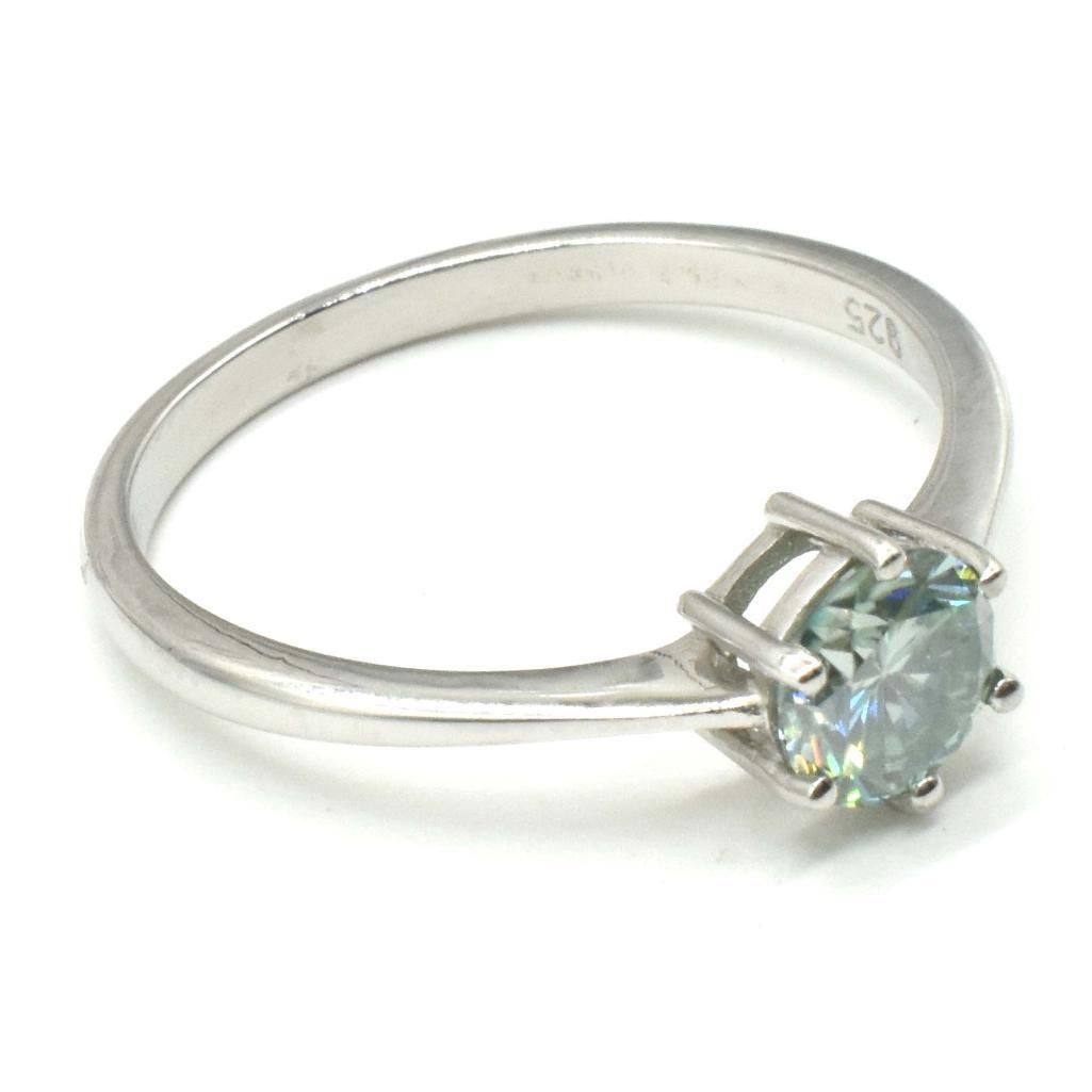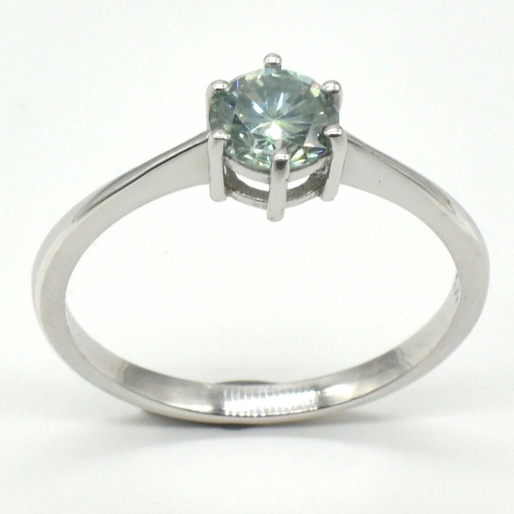 Silver Blue Moissanite (Round 6 Mm)(2.2ct) Rhodium Plated Test And Looks Better Than Diamond Mens Ring Ring (~weight 2.2g), Suggested Retail Value $600
