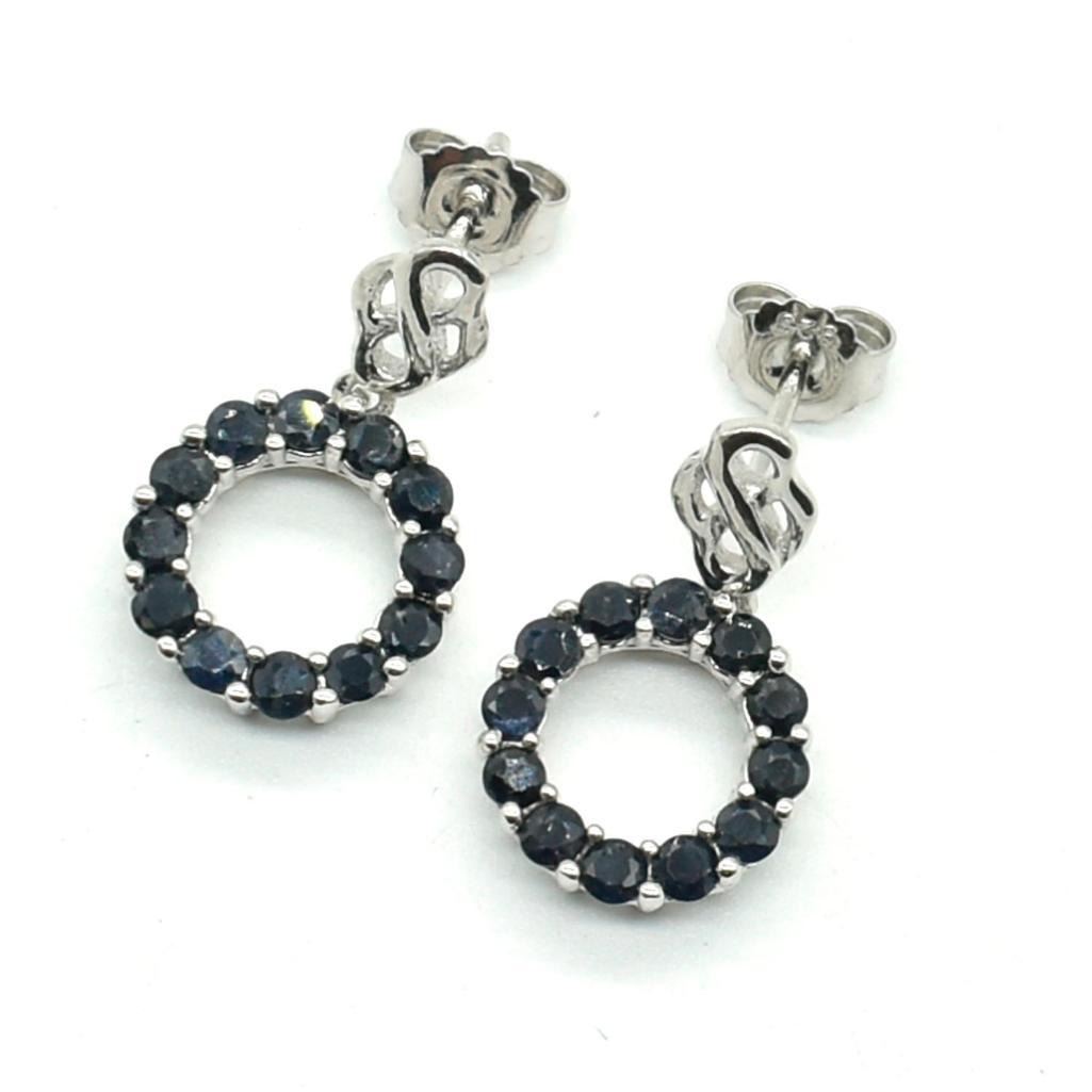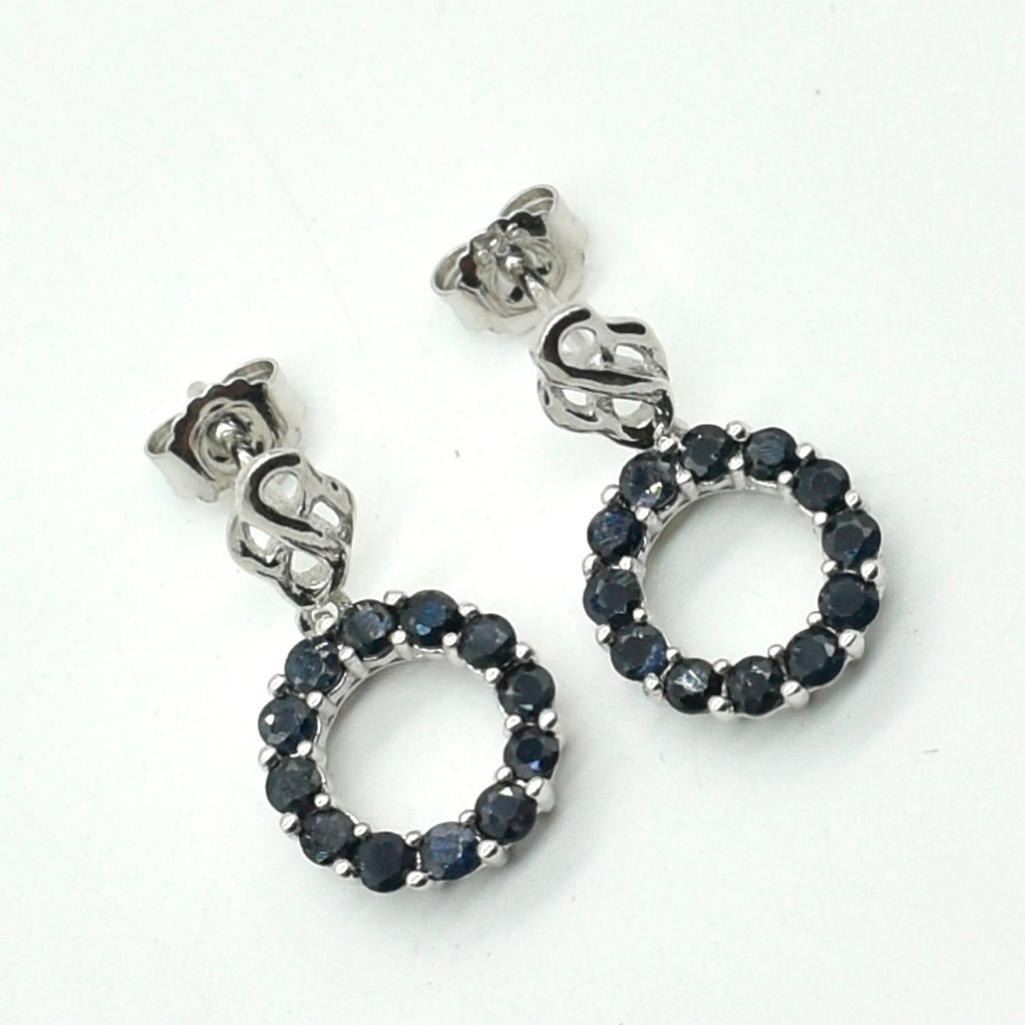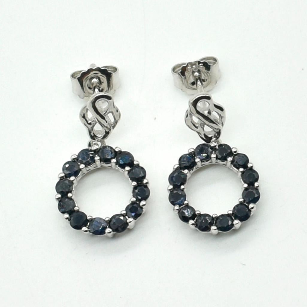 Silver Blue Sapphire(1.8ct) Rhodium Plated Earrings (~weight 3.65g)