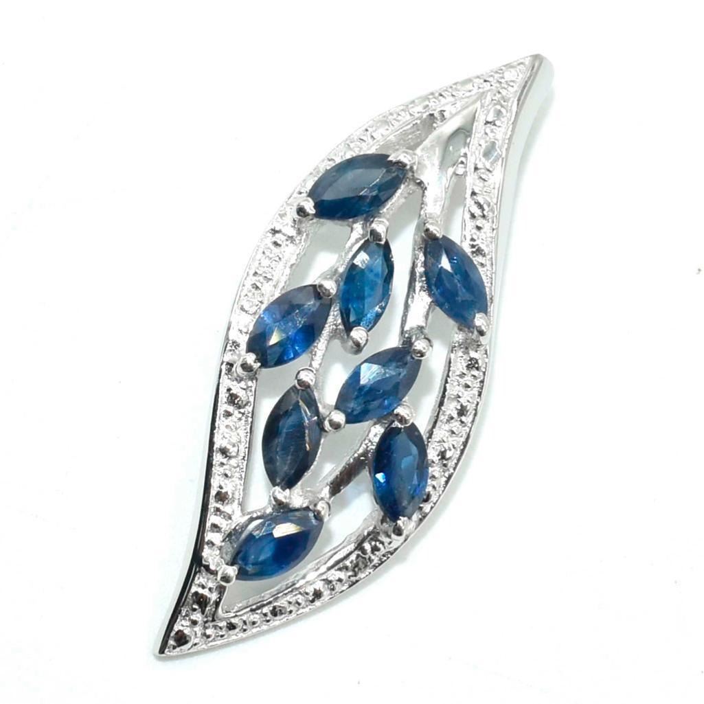 Silver Blue Sapphire White Topaz(1.35ct) Rhodium Plated Pendant (~weight 2.35g)
