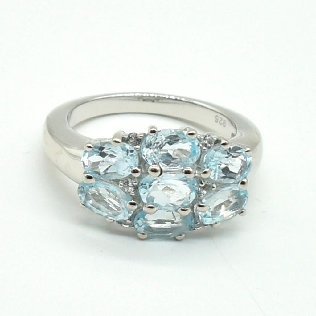 Silver Blue Topaz(3.6ct) Rhodium Plated Ring (~weight 5.05g)