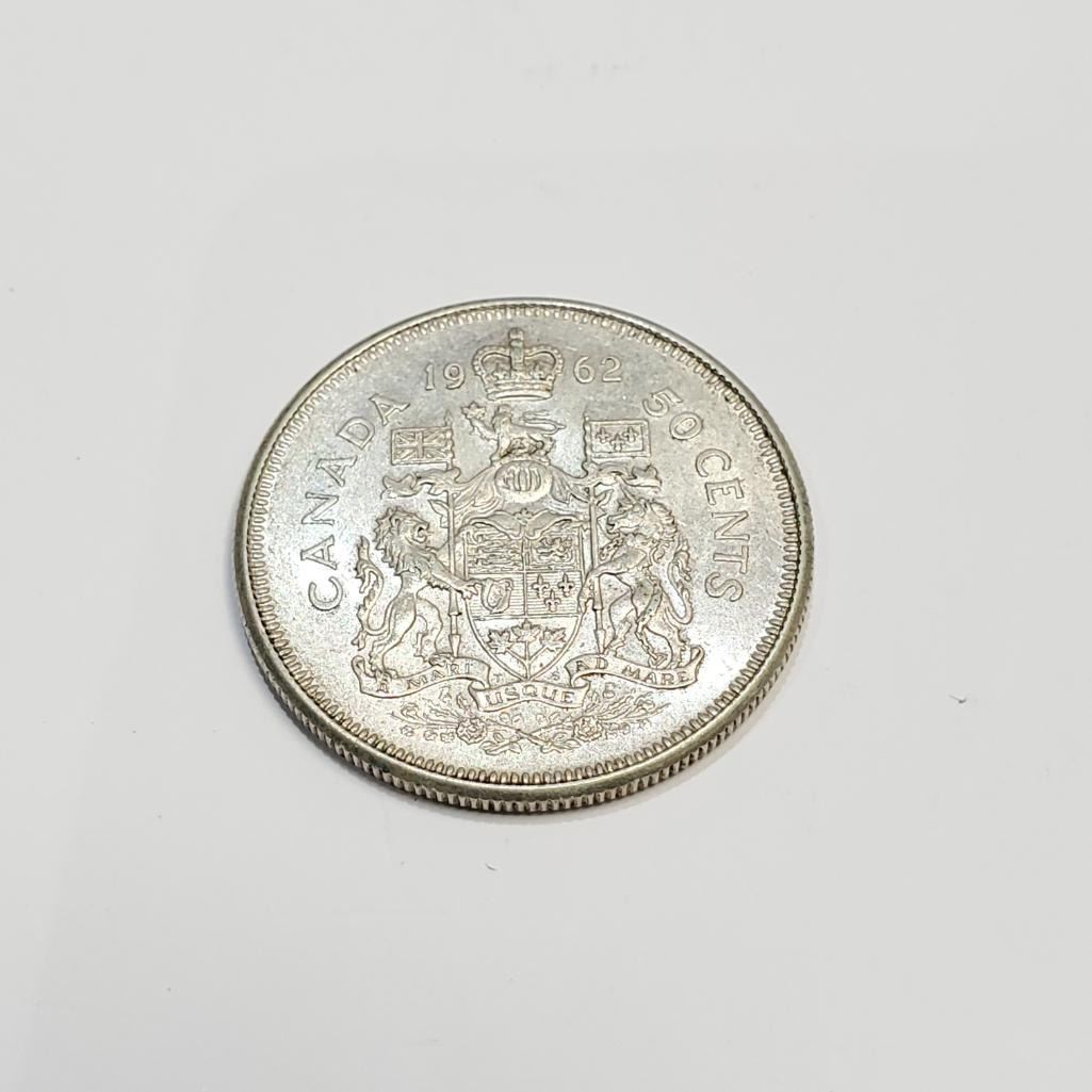 Silver Canadian 50 Cents Coin (~Size 0) (~length 0 inches) (~weight 11.5g), Suggested Retail Value $80