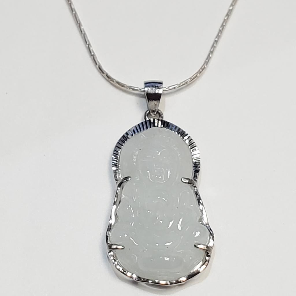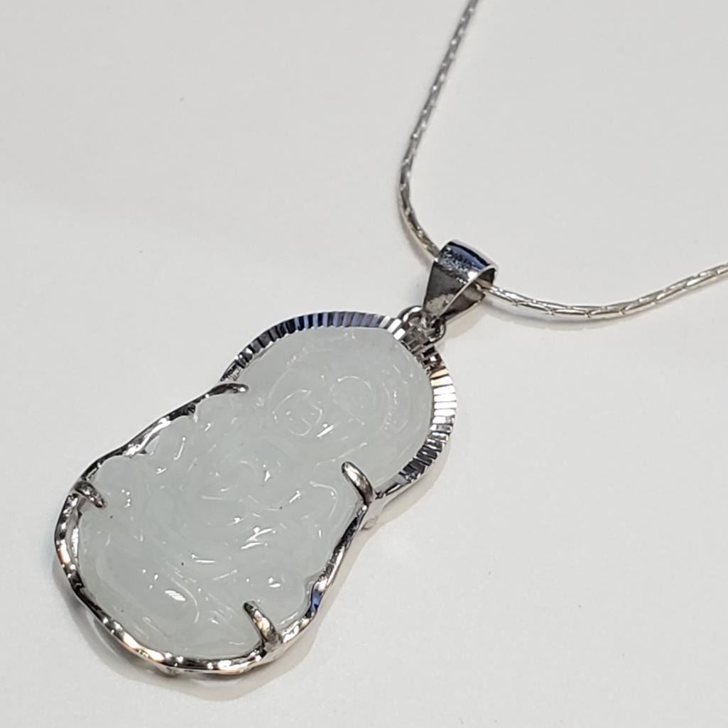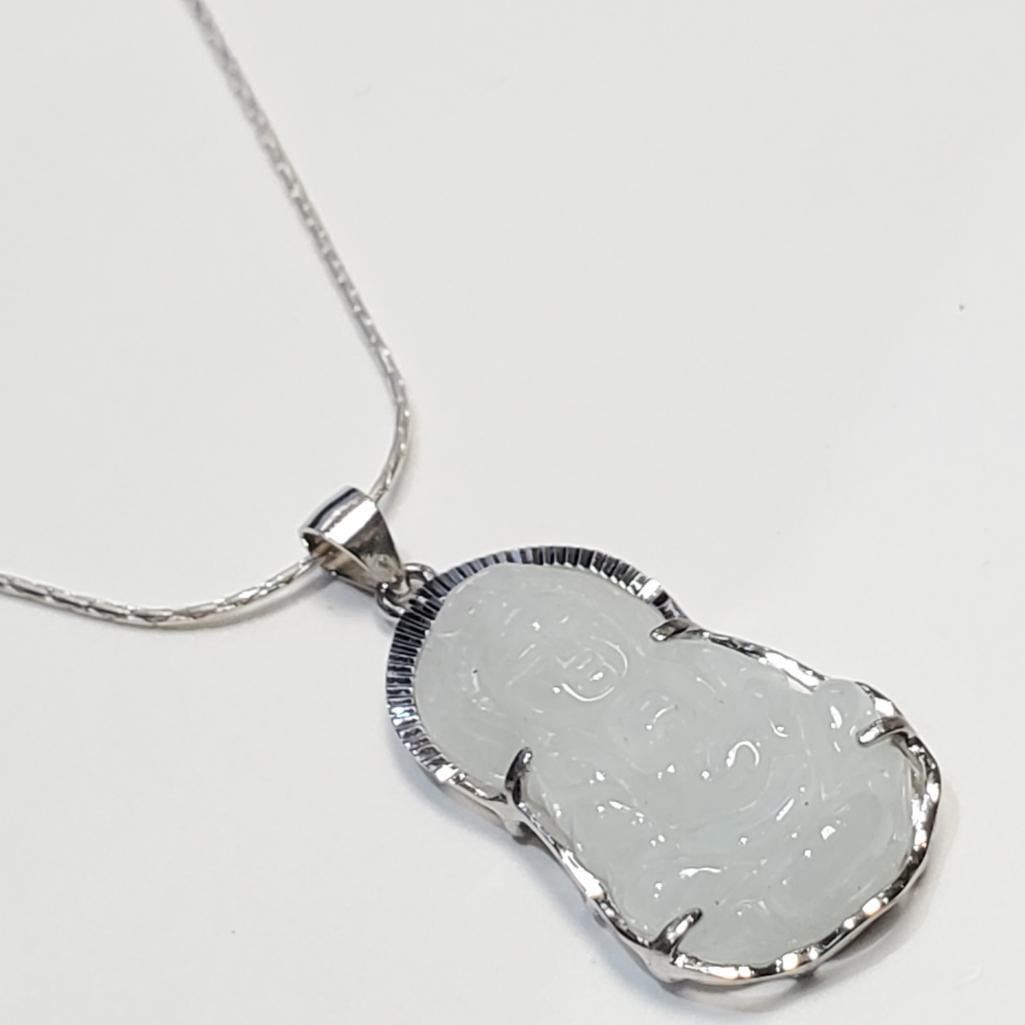 Silver Carved Jadeit Buddha Necklace (~Size 0) (~length 0 inches), Suggested Retail Value $240