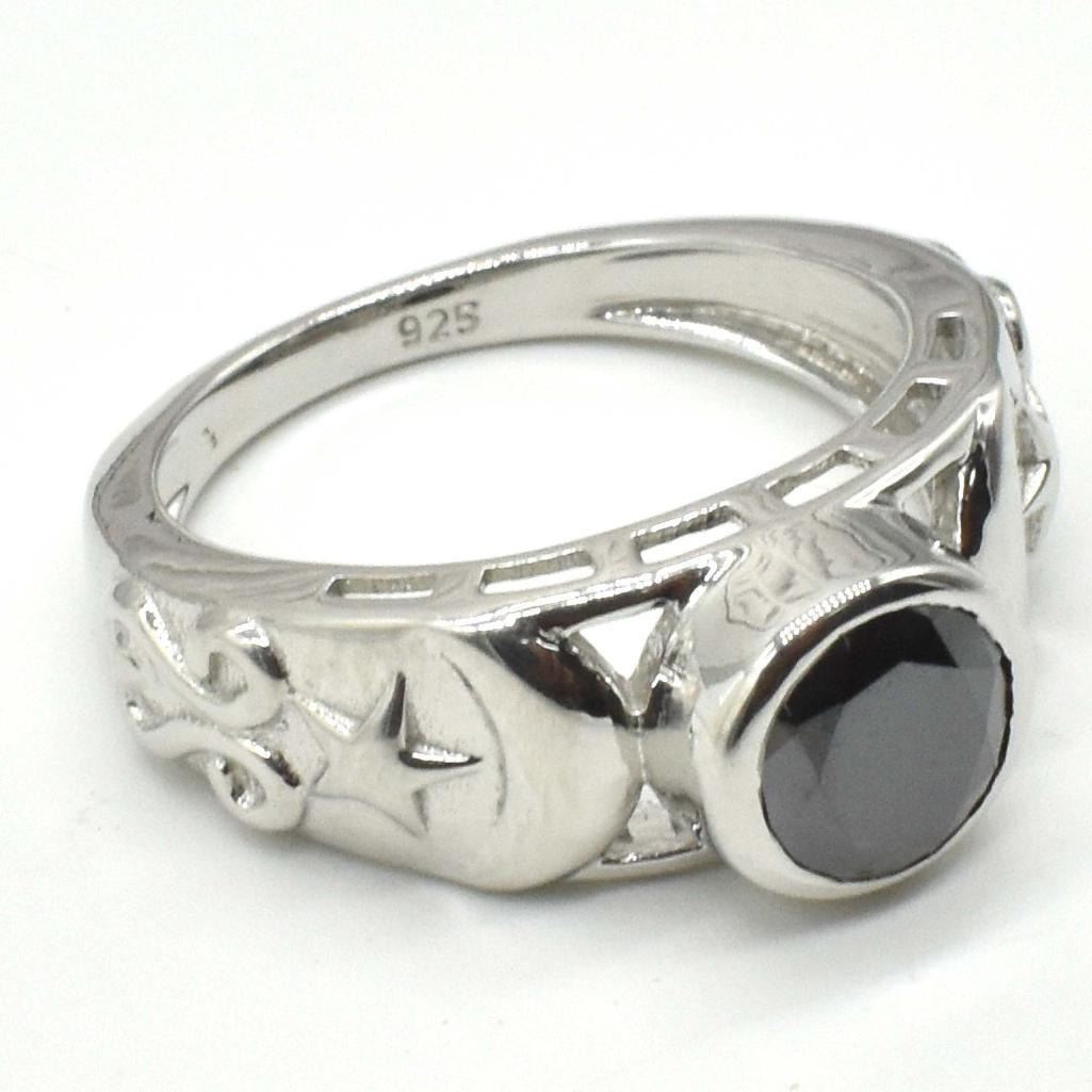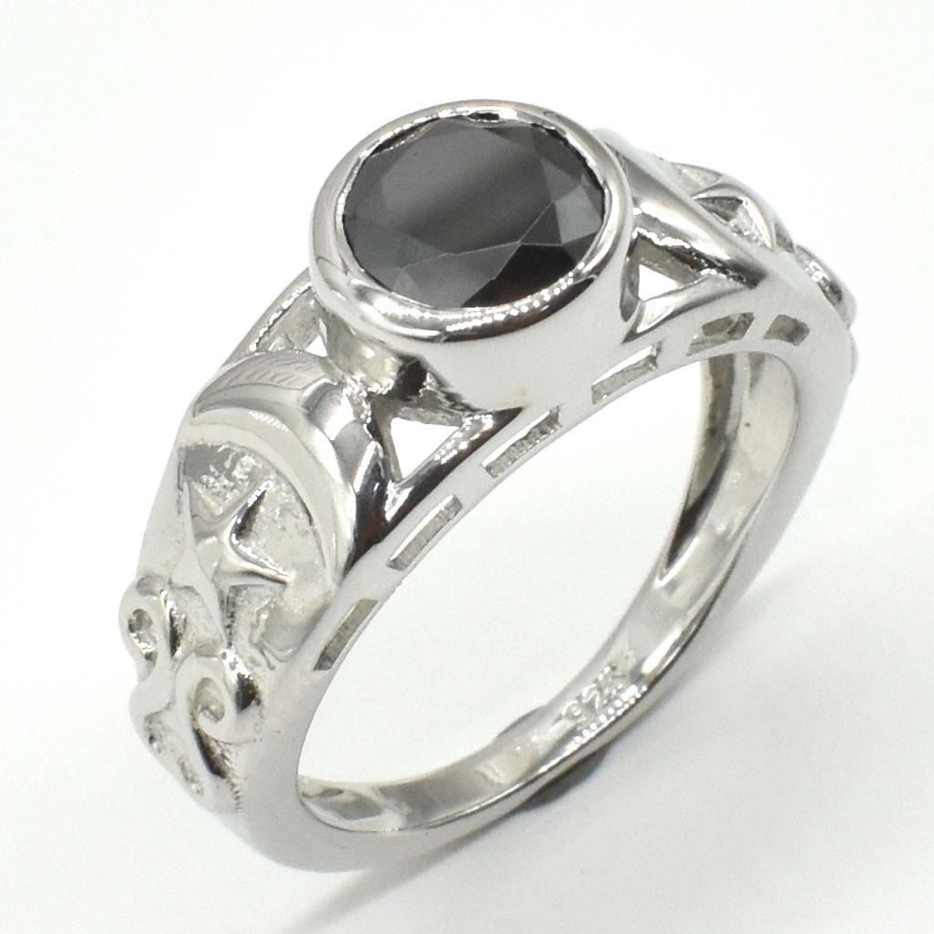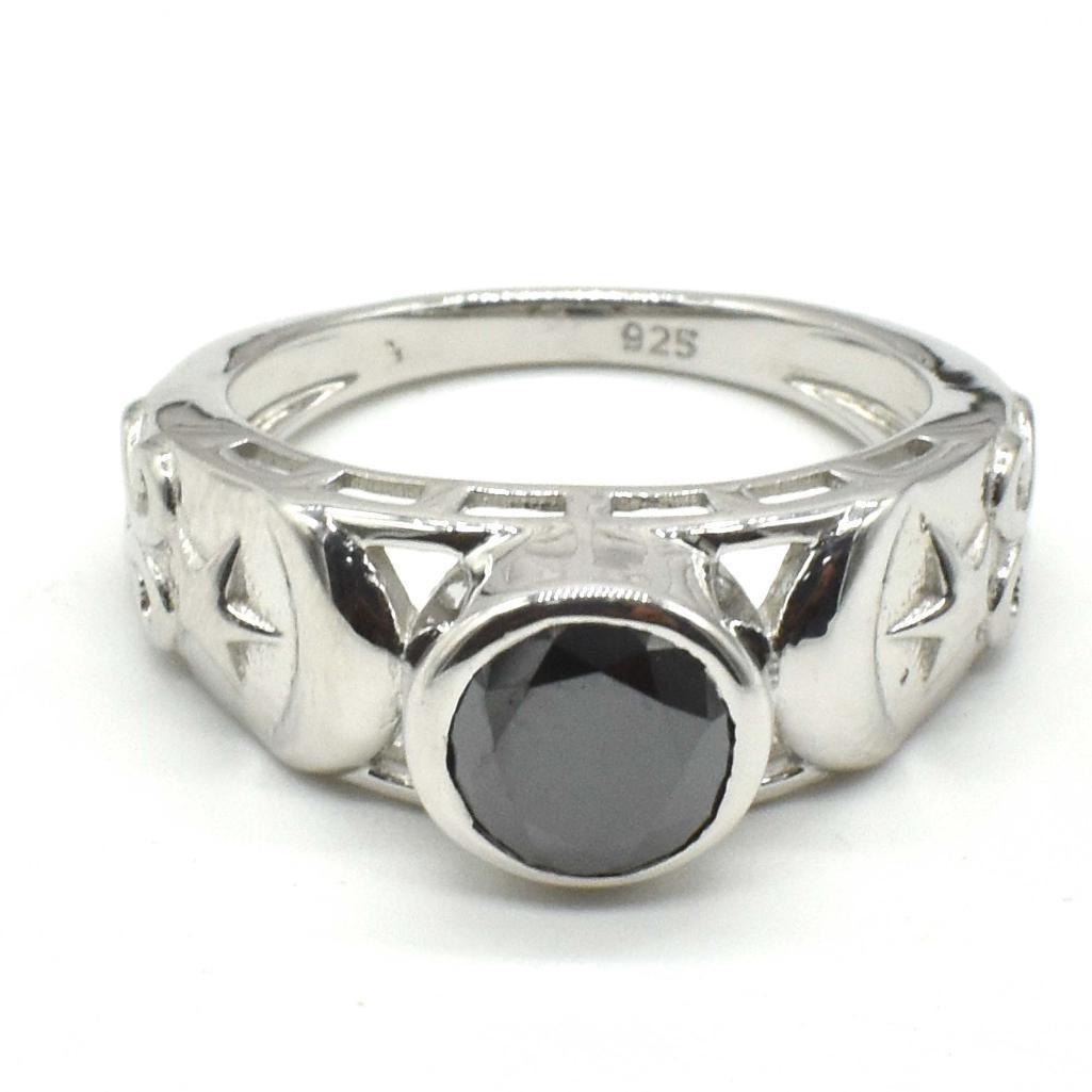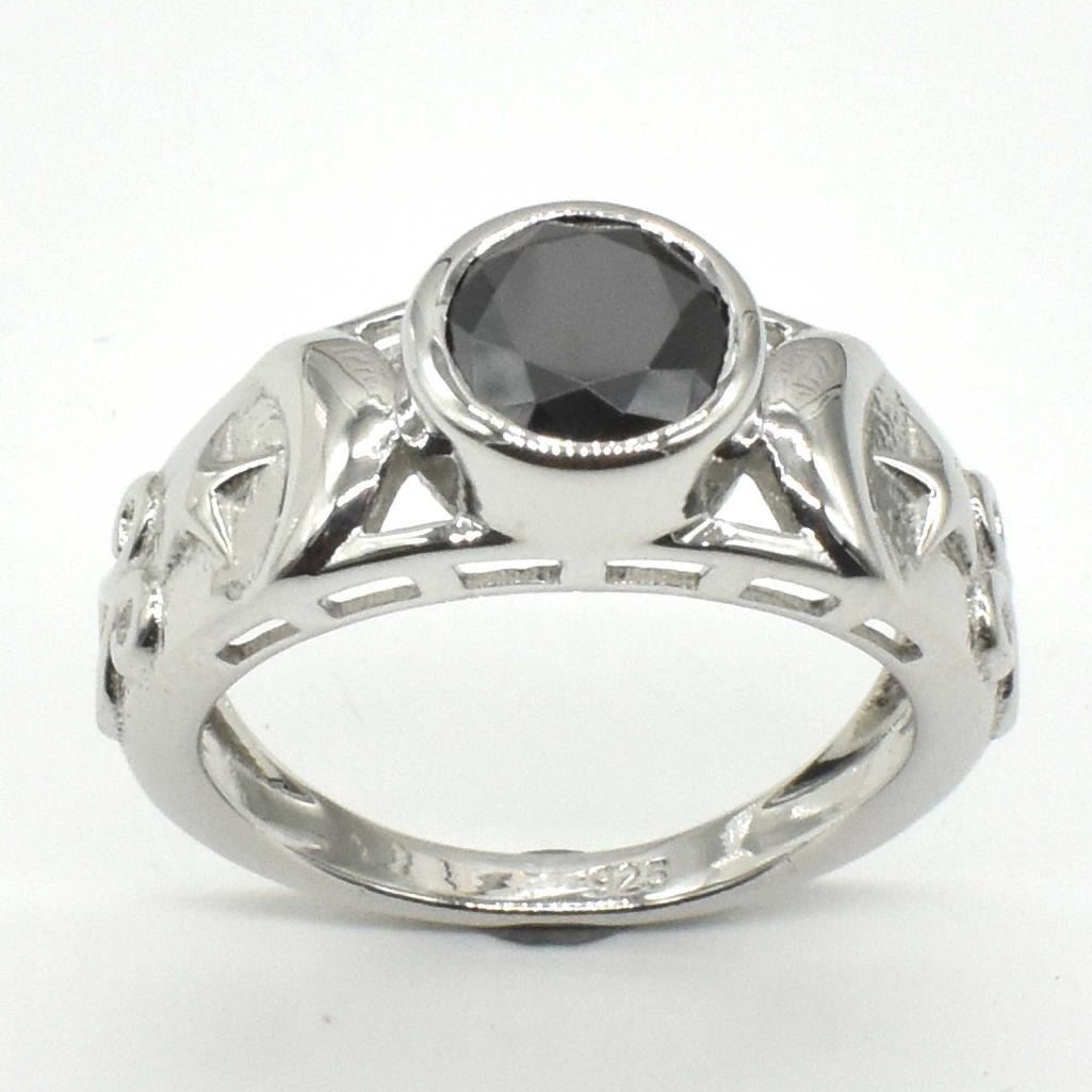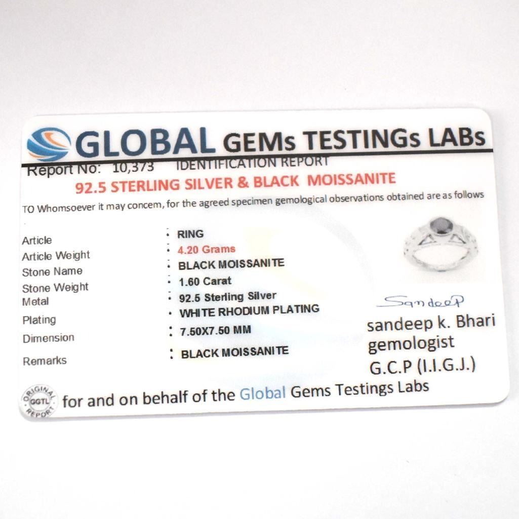 Silver Certified Black Moissanite ( Round 7.5 Mm)(4.2ct) Rhodium Plated Test And Looks Better Than Diamond Ring (~weight 4.2g), Suggested Retail Value $1200