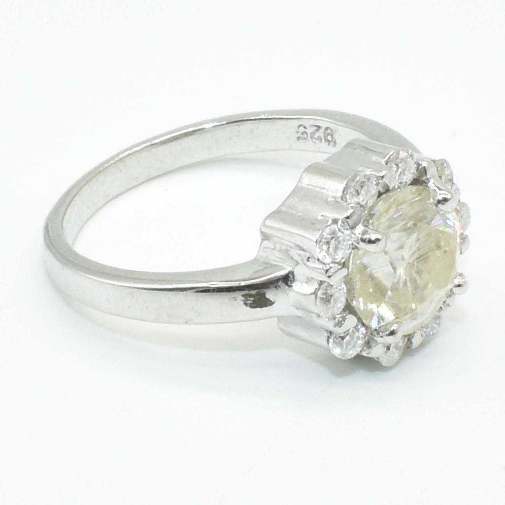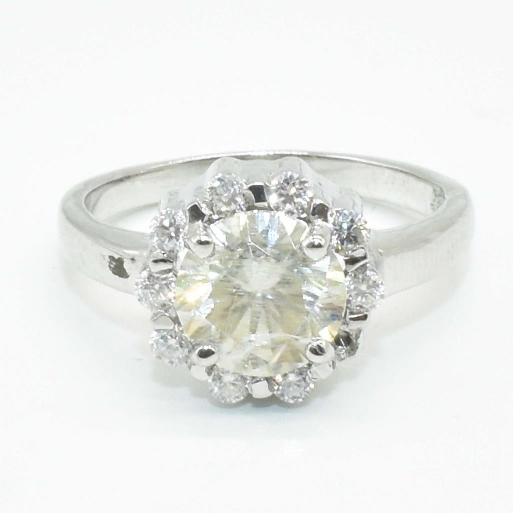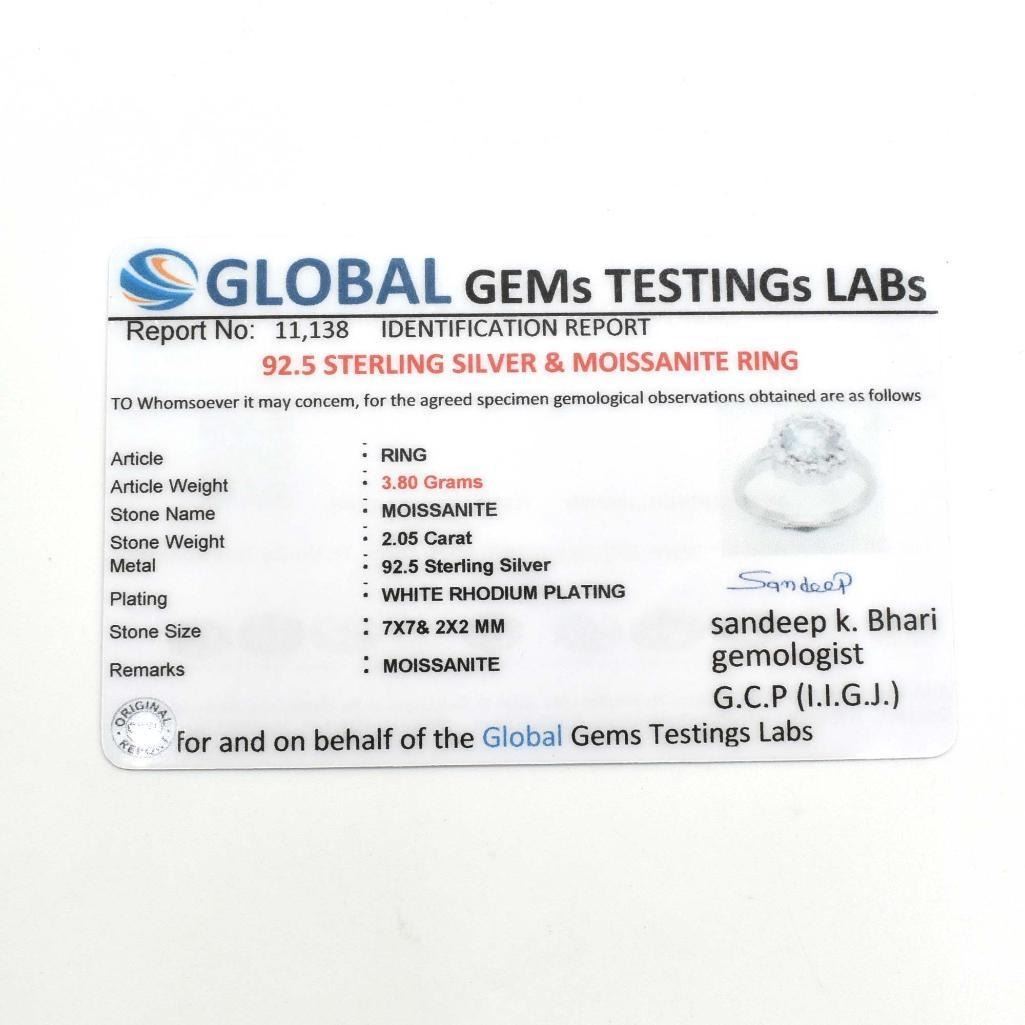 Silver Certified Moissanite (Round 7 & 2 Mm)(2.05ct) Rhodium Plated Test And Looks Better Than Diamond Ring (~weight 3.8g) (Estimated Selling Price from $63 to $126)