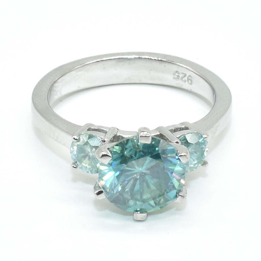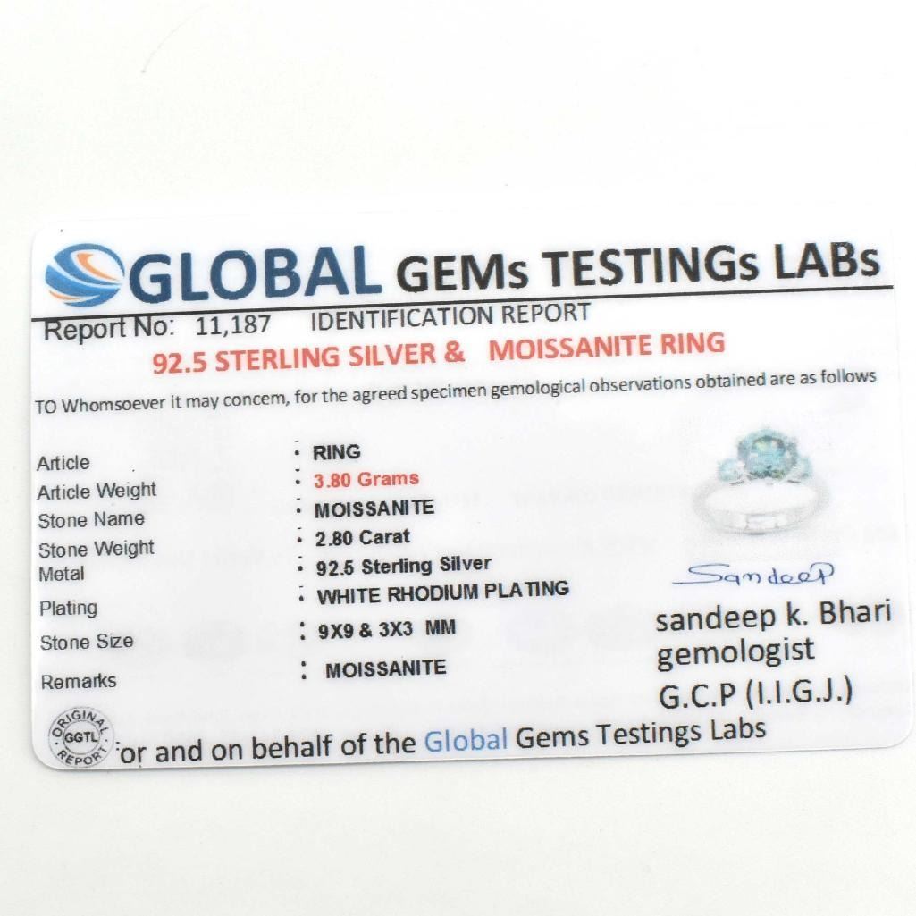 Silver Certified Moissanite (Round 9 & 3 Mm)(2.8ct) Rhodium Plated Test And Looks Better Than Diamond Ring (~weight 3.8g) (Estimated Selling Price from $60 to $120)