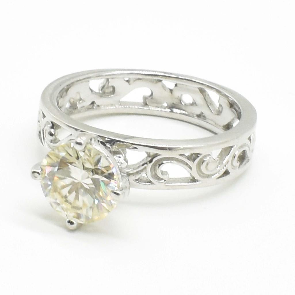 Silver Cirtified Moissanite (Round 7.50 Mm)(1.95ct) Rhodium Plated Test And Looks Better Than Diamond Ring (~weight 3.7g)