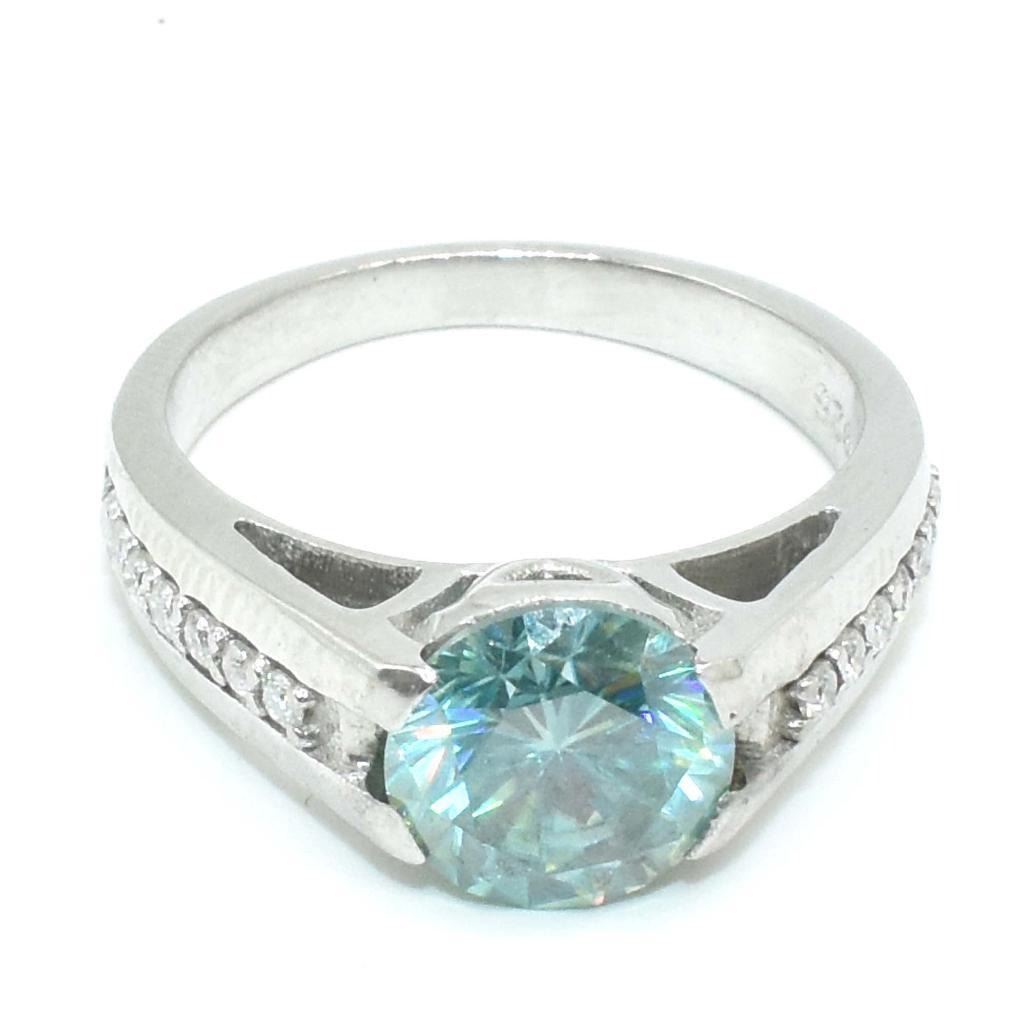 Silver Cirtified Moissanite (Round 8 & 1.5 Mm)(2.45ct) Rhodium Plated Test And Looks Better Than Diamond Ring (~weight 4.85g)