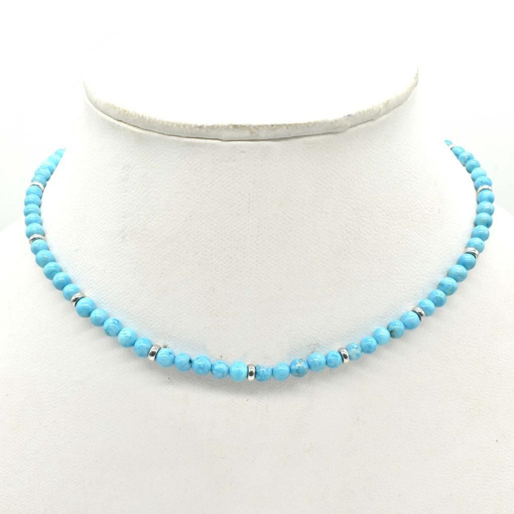 Silver Cirtified Turquoise(18.9ct) Rhodium Plated Necklace (~weight 12.5g)