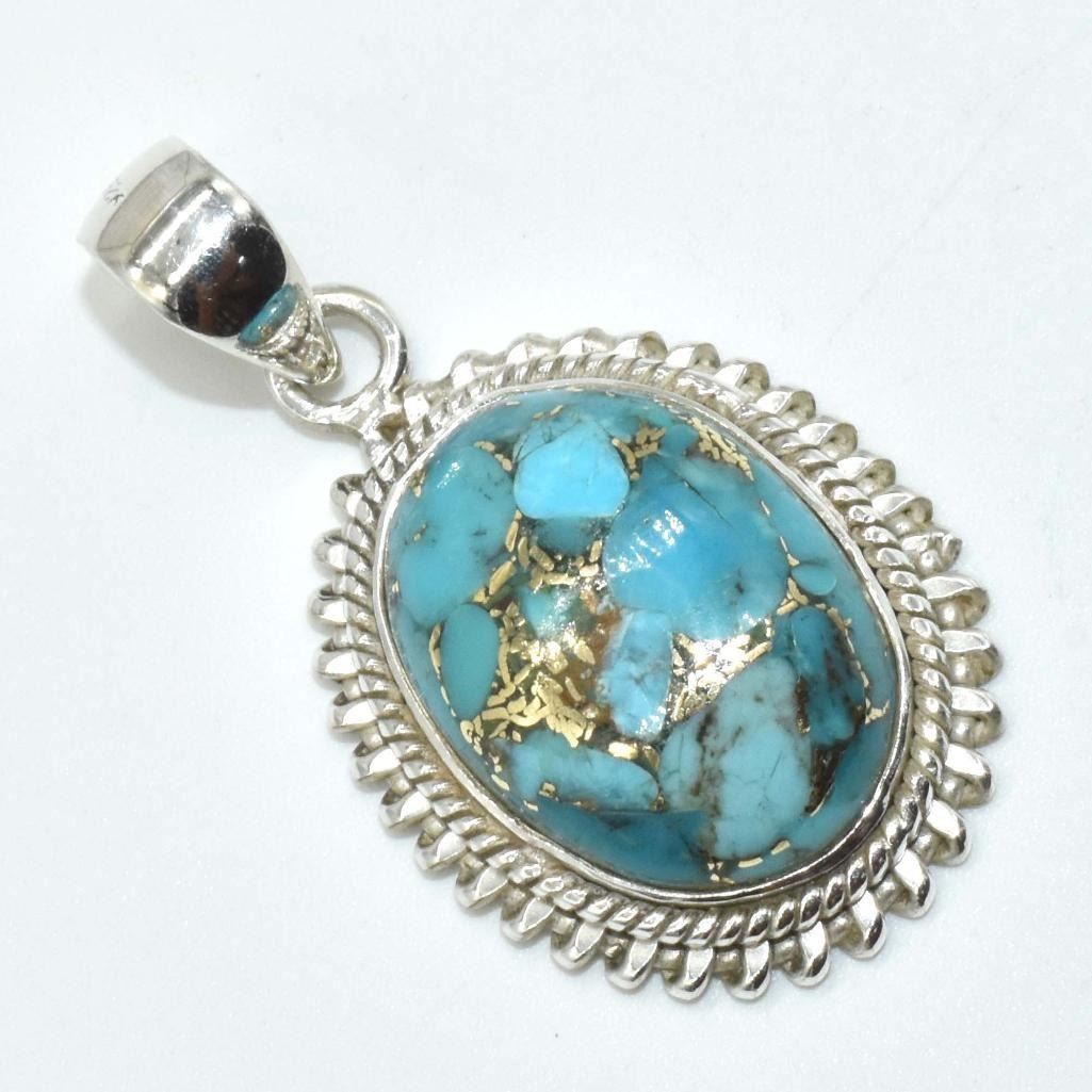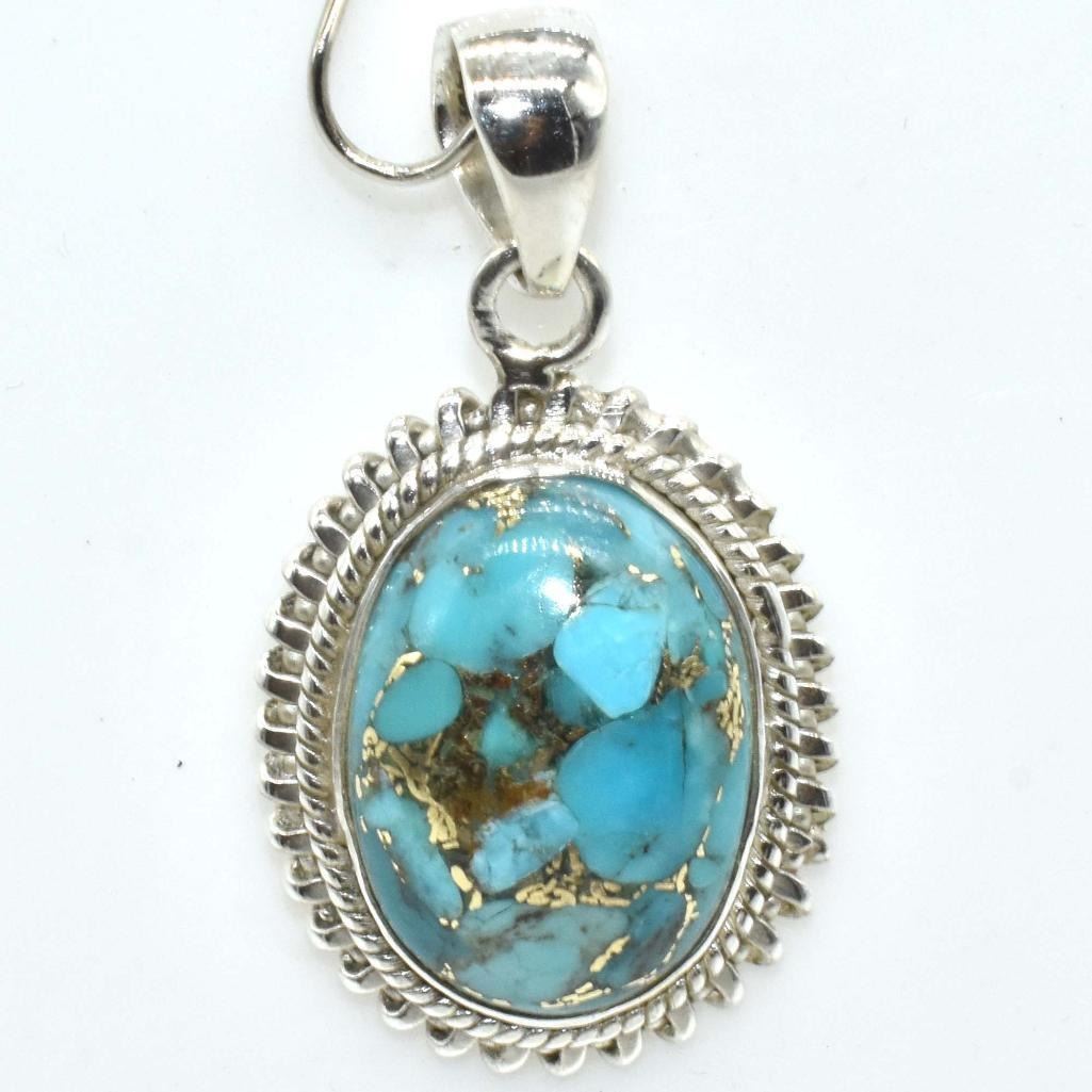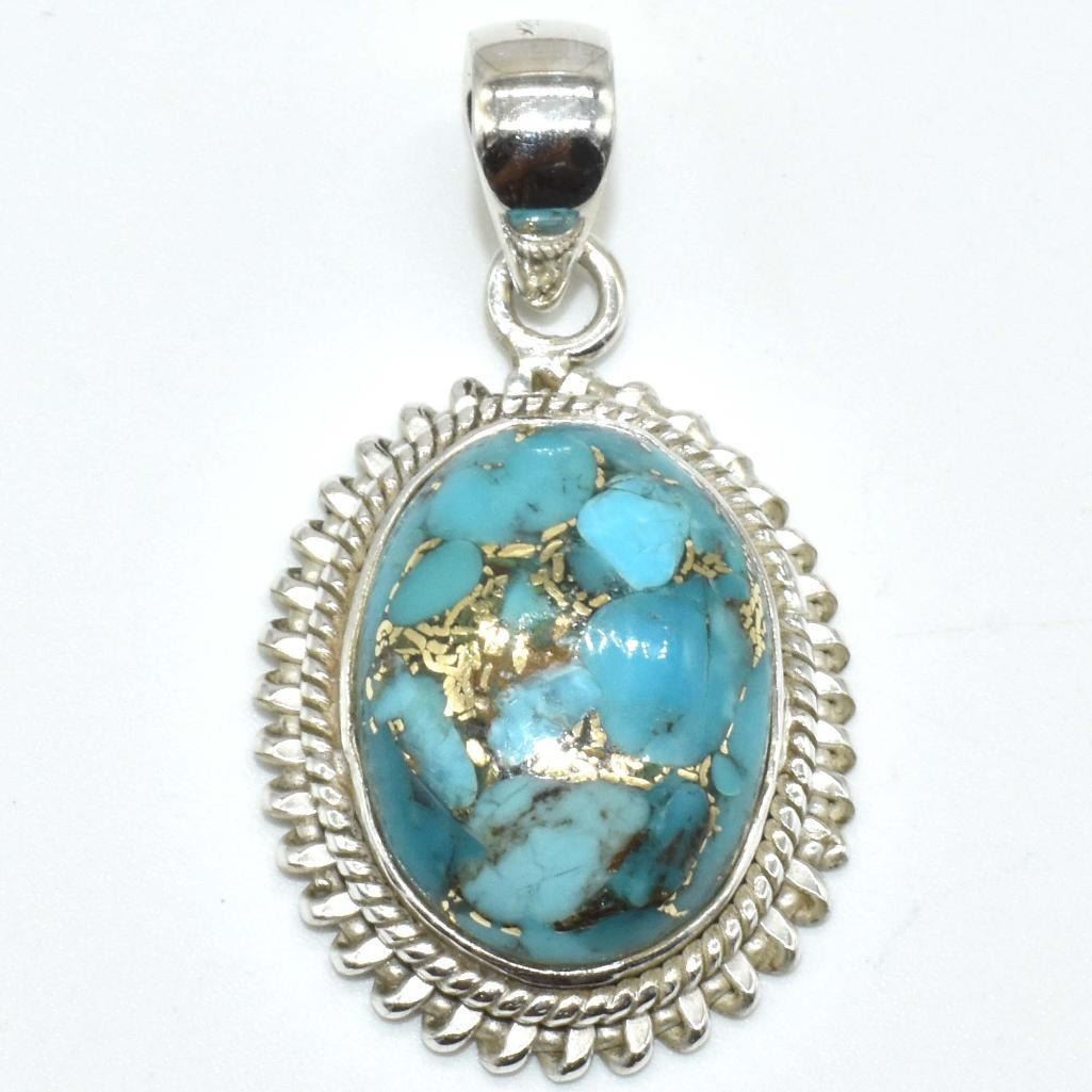 Silver Copper Muhave Turquoise (Reconstitued)(5.85ct) Pendant (~weight 5.85g), Suggested Retail Value $300