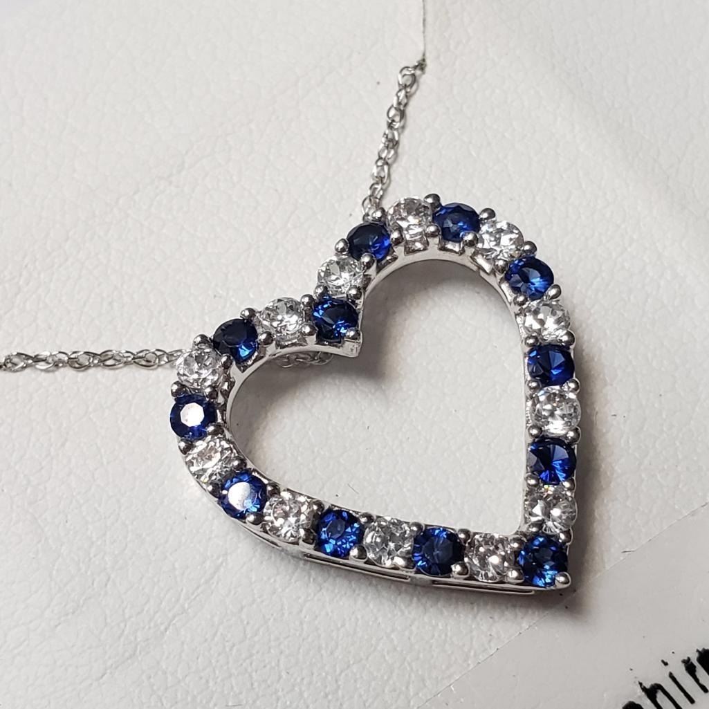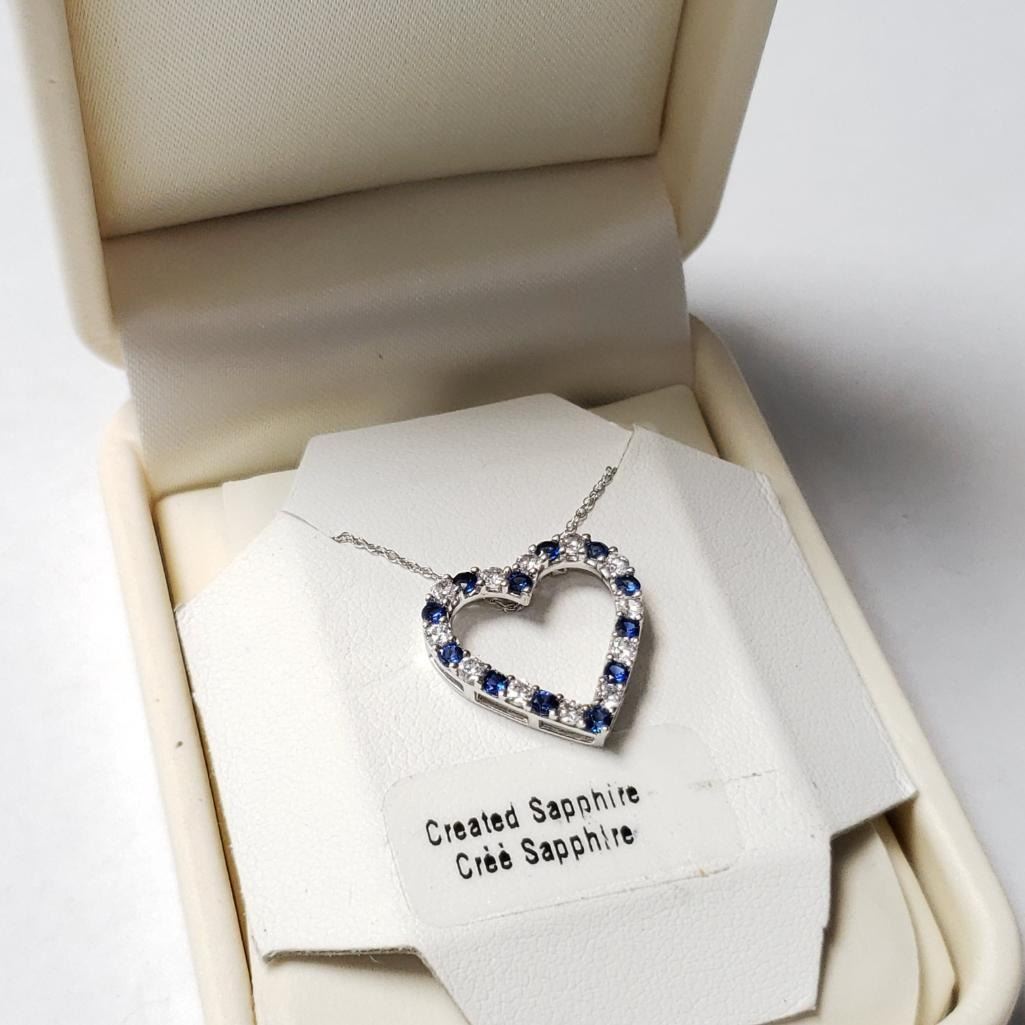 Silver Created Sapphire 19" Necklace (~Size )(Ring is resizable for $40) (~length inches), Suggested Retail Value $160