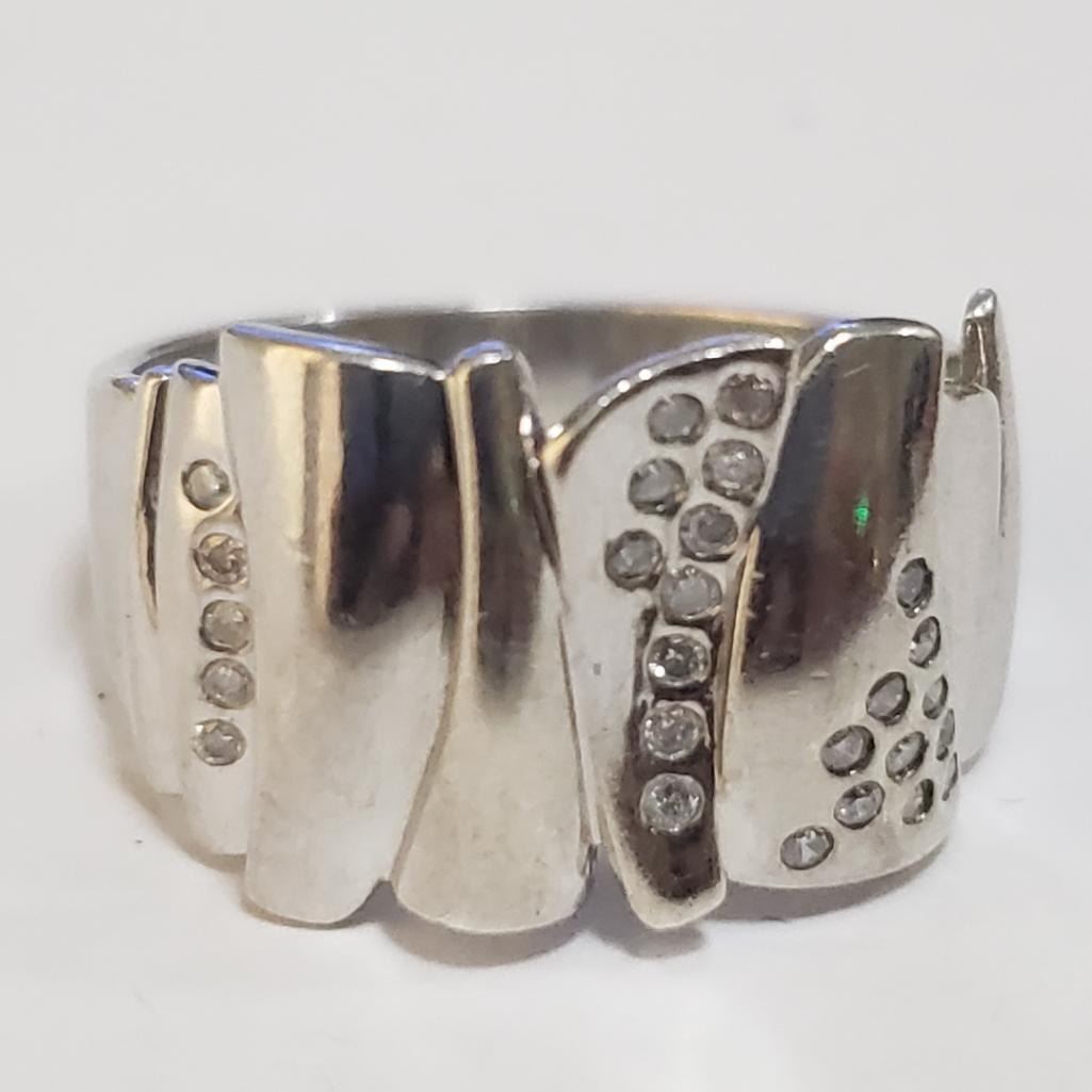 Silver Cubic Zirconia Ring (~Size 6.5) - RING (~length 0 inches) (~weight 3.54g), Suggested Retail Value $100