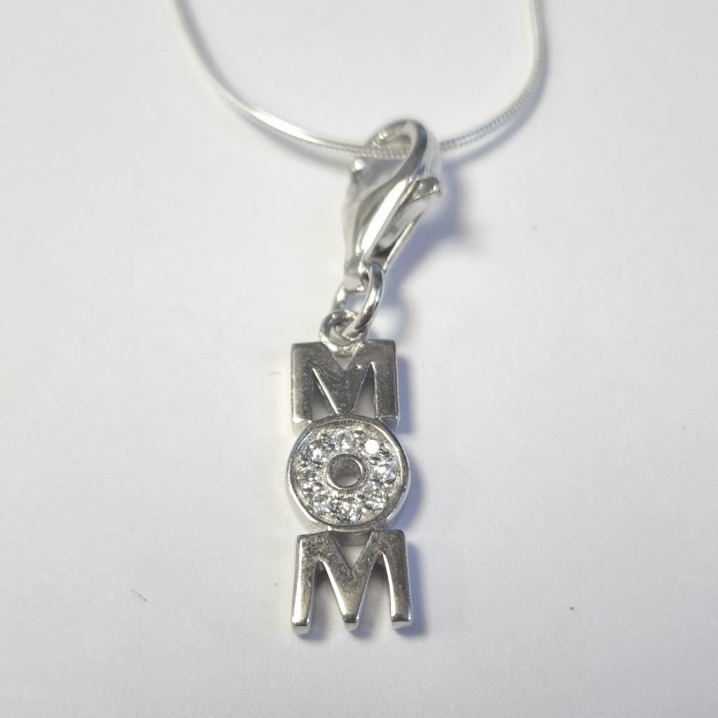 Silver Cz "Mom" 16" Necklace (~Size )(Ring is resizable for $40) (~length inches), Suggested Retail Value $120