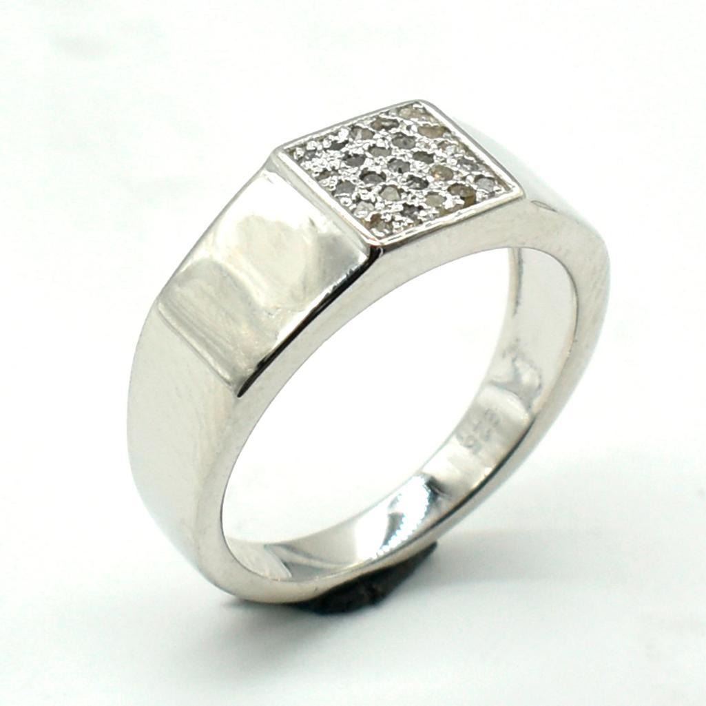 Silver Diamond(0.25ct) Rhodium Plated Ring (~weight 4.25g)