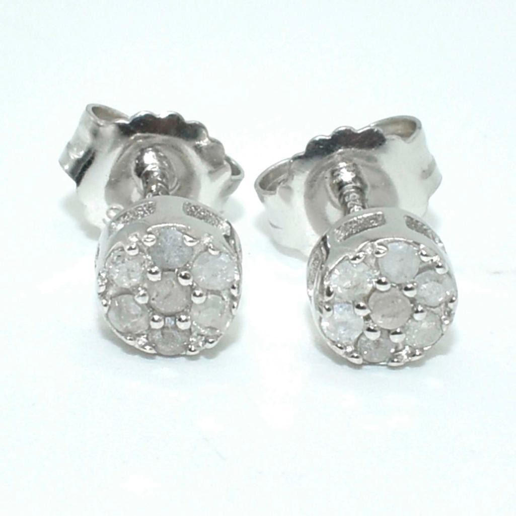 Silver Diamond(0.3ct) Rhodium Plated Earrings (~weight 1.75g)