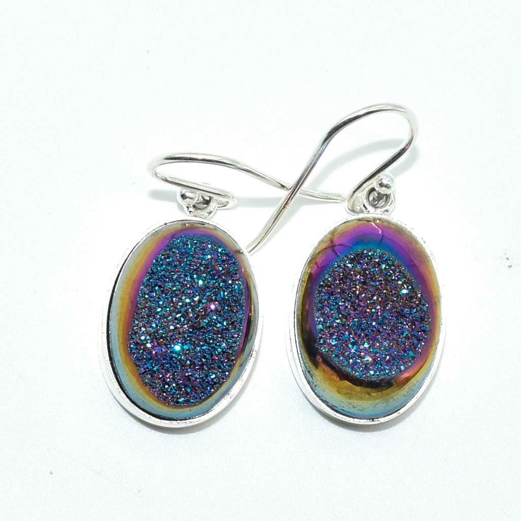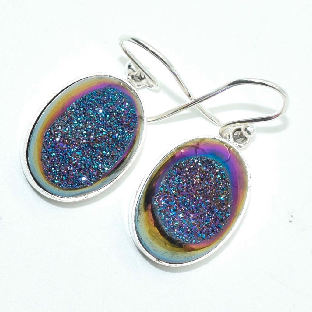 Silver Druzy(67.5ct) Hand Made Earrings (~weight 8.05g)