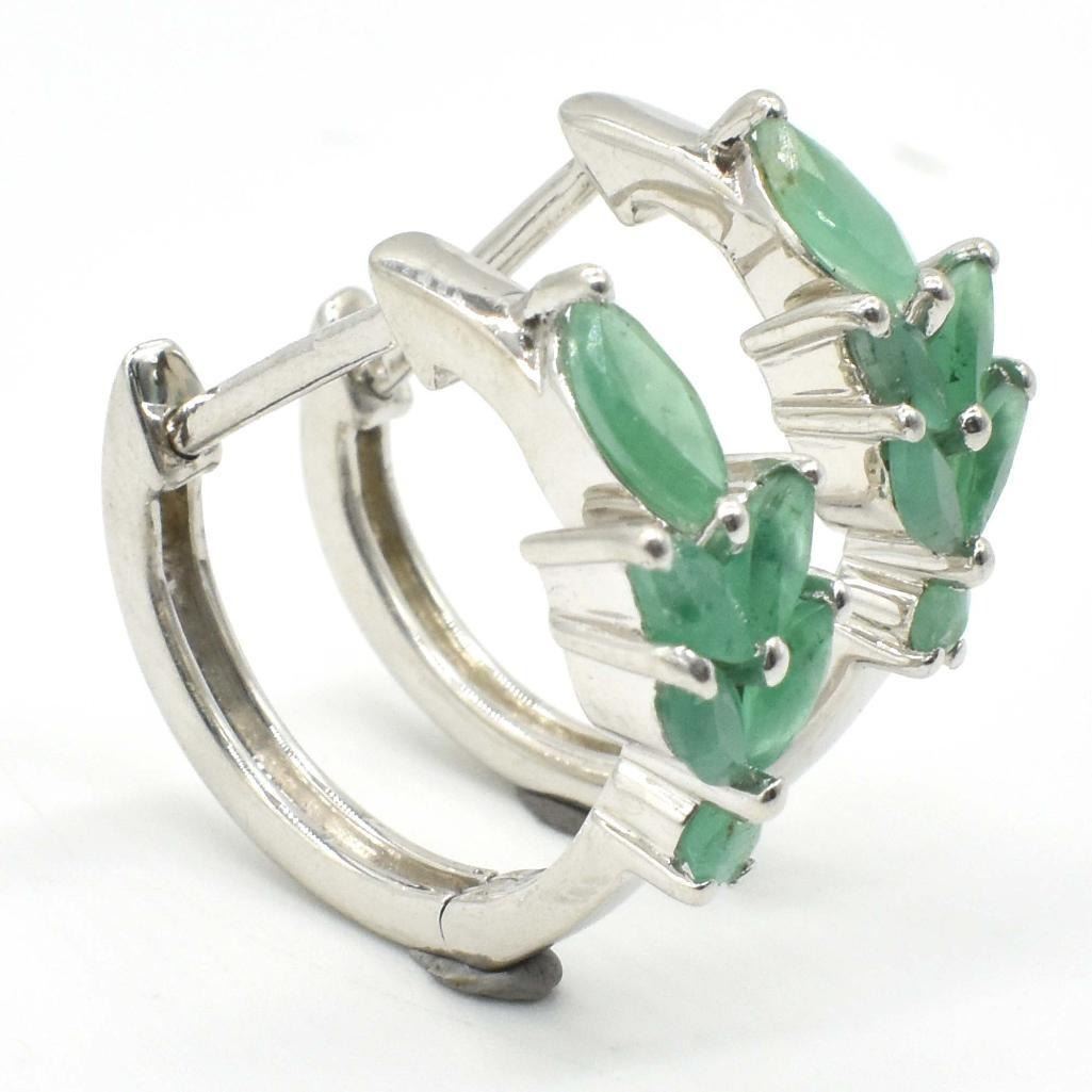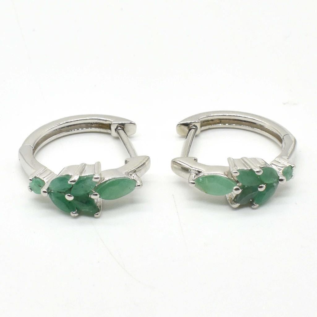 Silver Emerald (1.3ct) Rhodium Plated Earrings (~weight 3.85g)