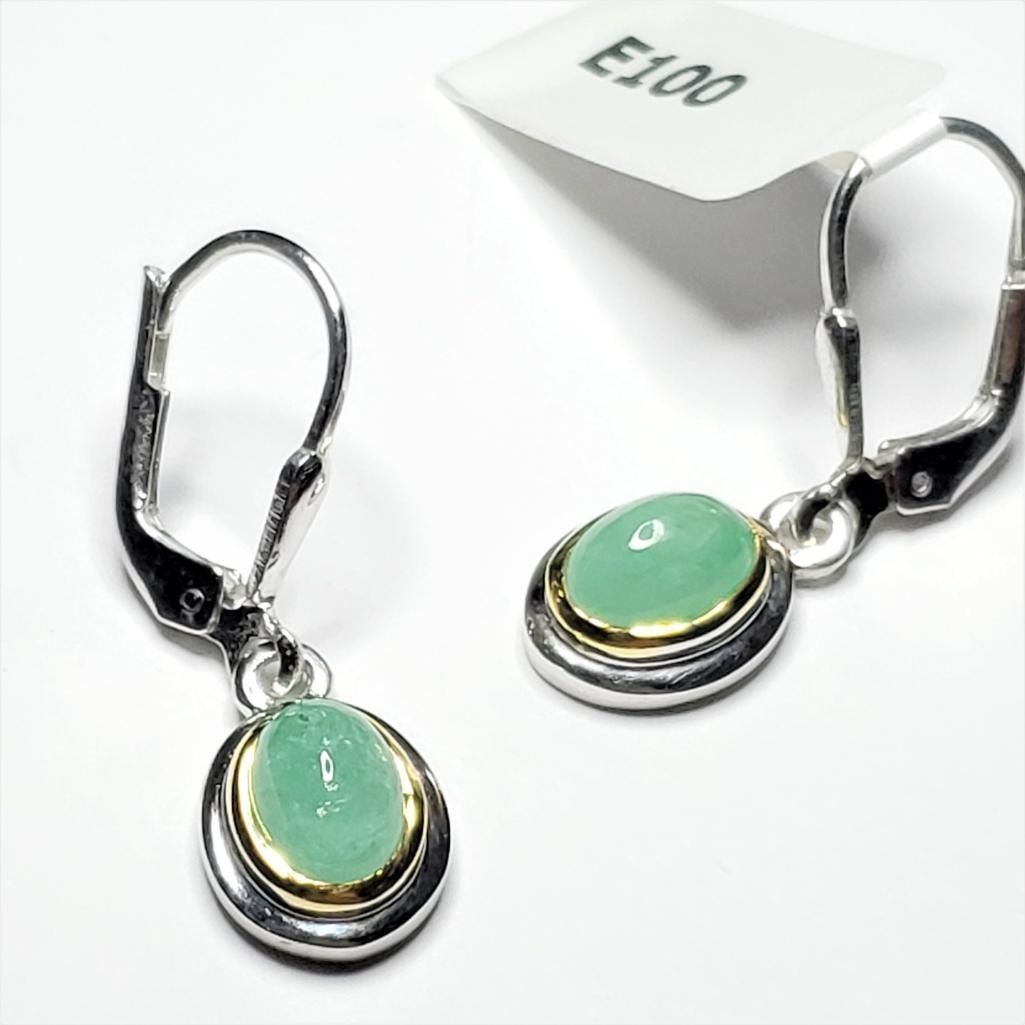 Silver Emerald(2.1ct) Earrings (~Size )(Ring is resizable for $40) (~length inches), Suggested Retail Value $150